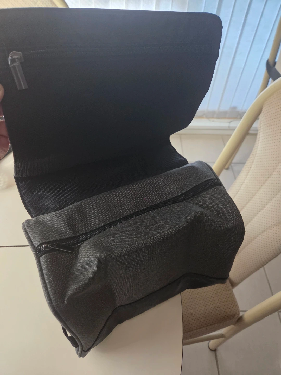 BOSS Hugo Boss toiletry travel bag. NEW. Large size. 10" L x 5" W x 7" H. It has a main compartment with a zippered closure. Mesh zippered pocket inside. 17" length when fully open. Includes a loop on side. Easy to fold for storage.