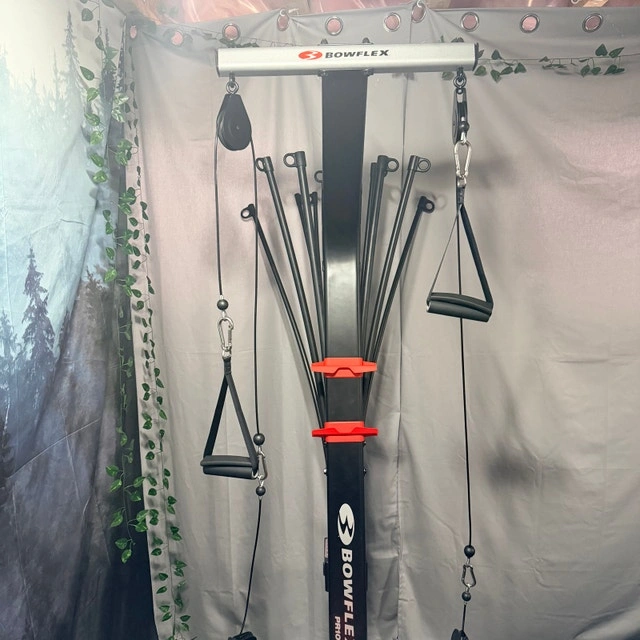 I'm selling a Bowflex PR1000 home gym in used condition, perfect for a full body workout at home. This machine offers over 25 exercises and provides resistance up to 210 lbs. It's a great way to get a comprehensive workout without needing multiple machines. It has a space-saving design and folds for easy storage. It also features multiple cable pulley positions for custom workouts, includes a rowing machine rail, and a workout bench. Cash accepted.