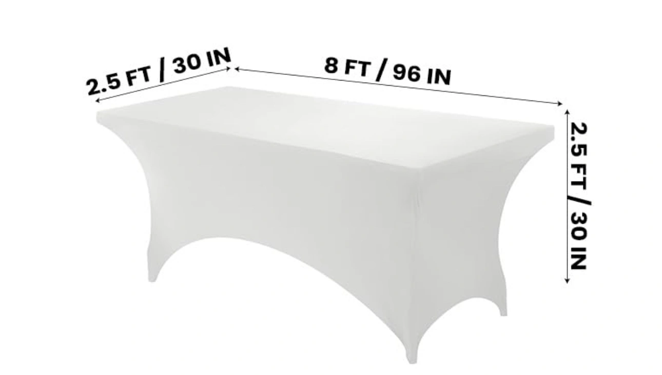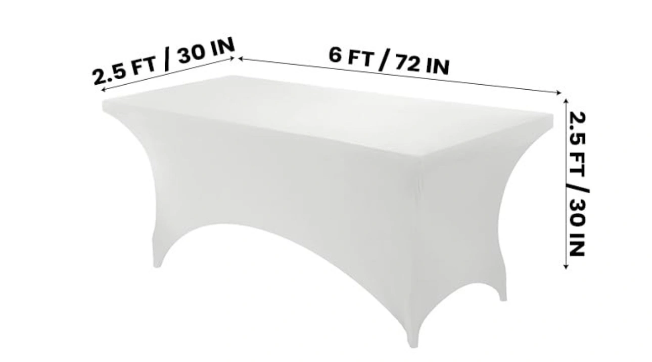 Durable and Stretchable Table Covers: Made from a blend of 10% spandex and 90% polyester, these table covers feature a wrinkle-resistant, stretchable fabric with a weight of 200 GSM. They are designed for durability and easy maintenance, requiring no ironing and withstanding countless washes.