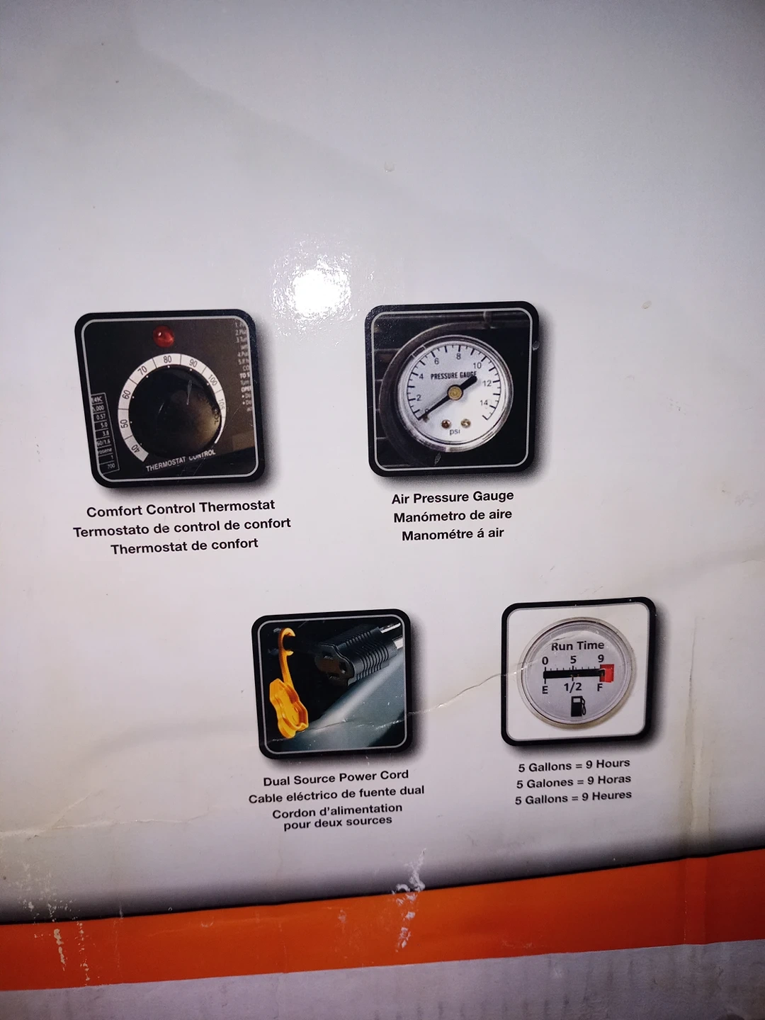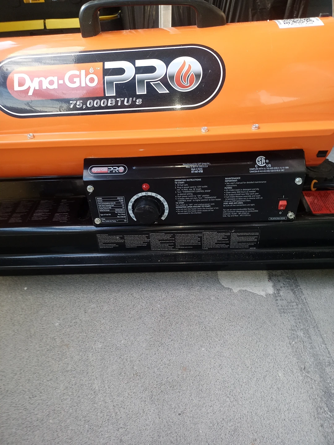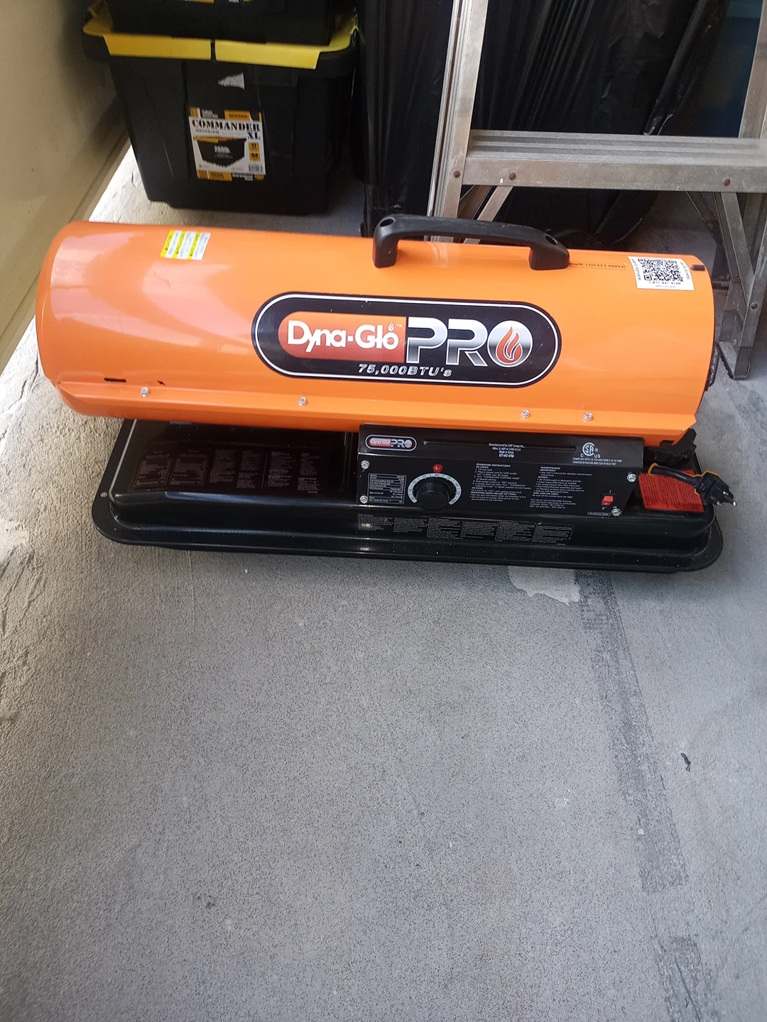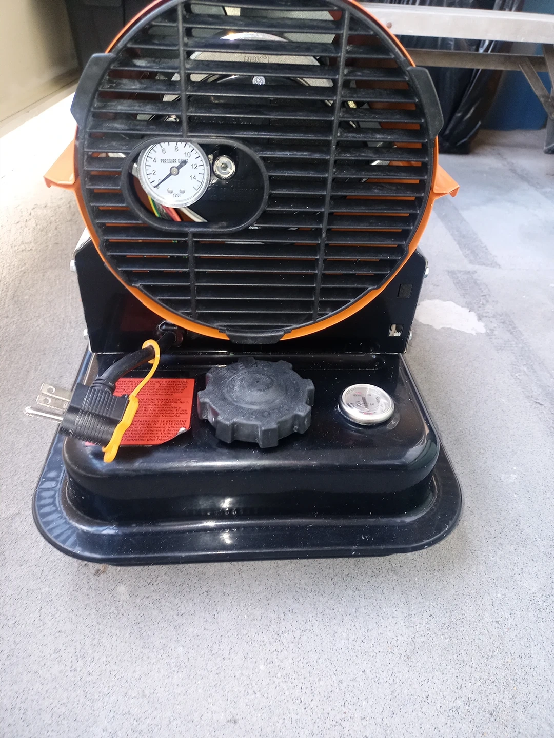 1000+Works perfect. Forced Air Kerosene Portable Heater Model # KFA75H. There is still some Kerosene in the tank. See pictures provided for more information. You can use Deisel or Gas. Great deal here!