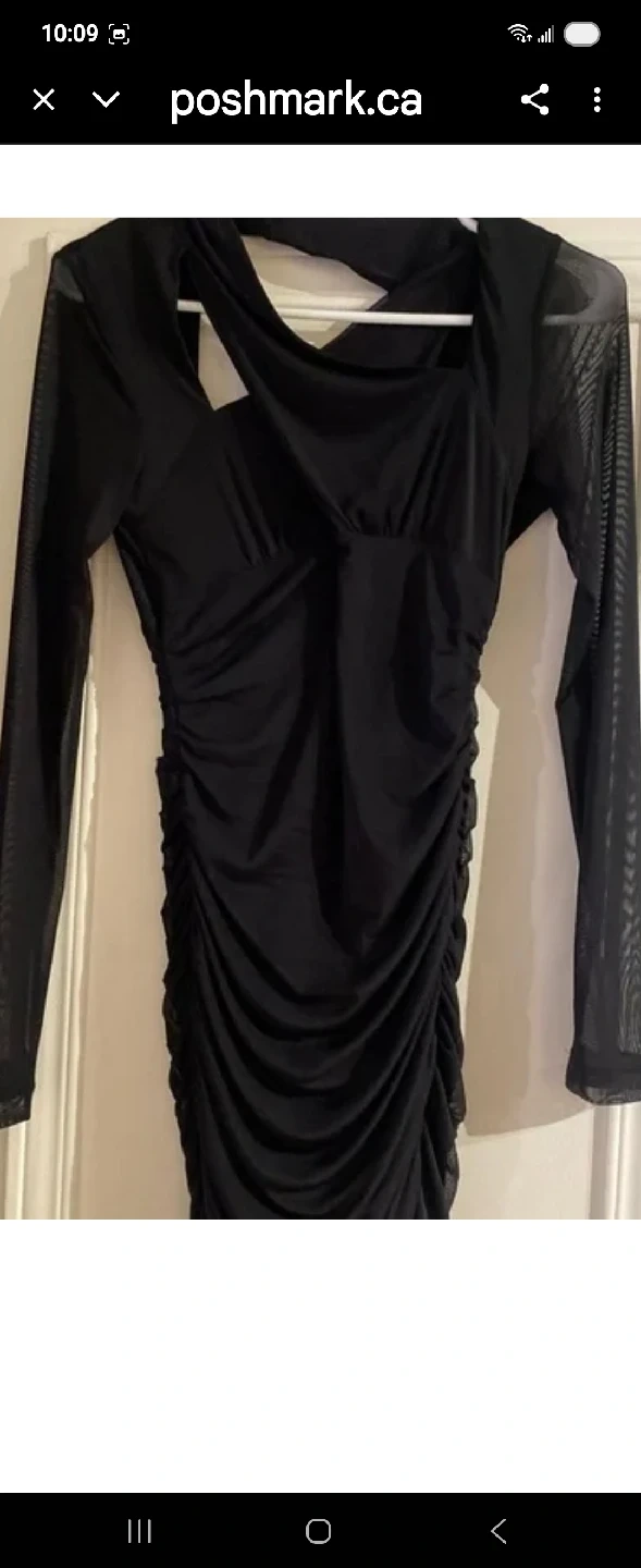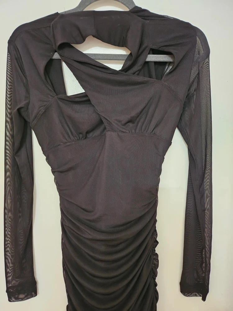 1000+Selling a cute black mini dress from Dynamite! It's a size P/S and features a unique open back design with long sleeves. Perfect for a night out!
