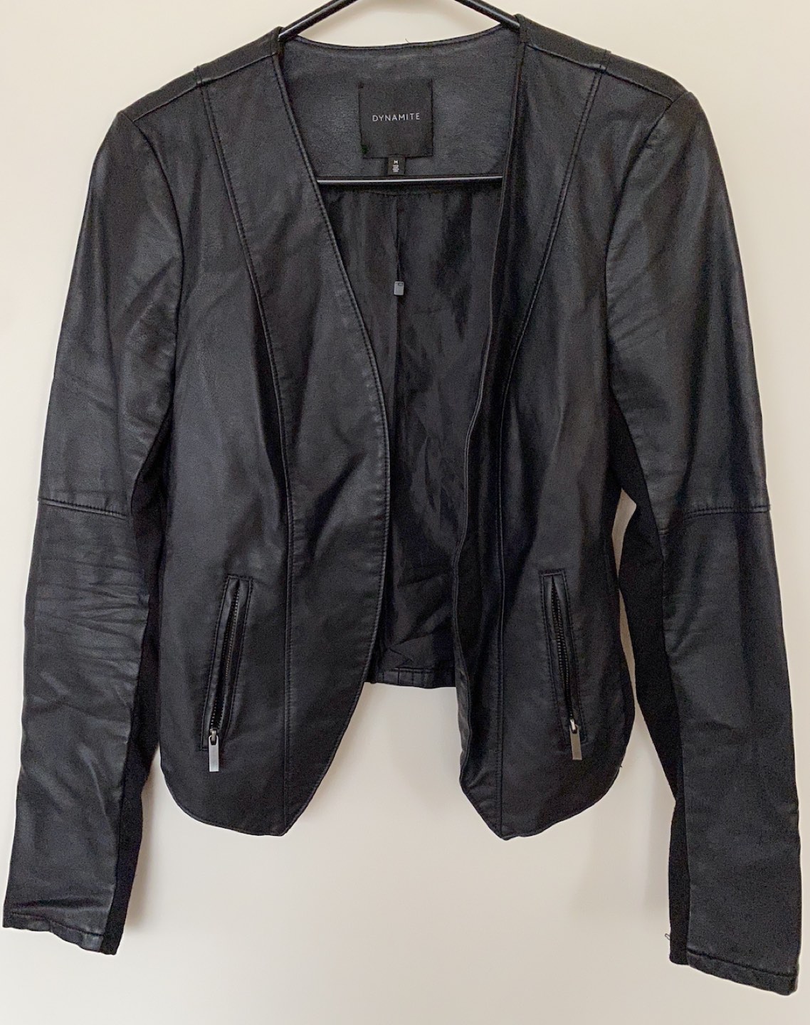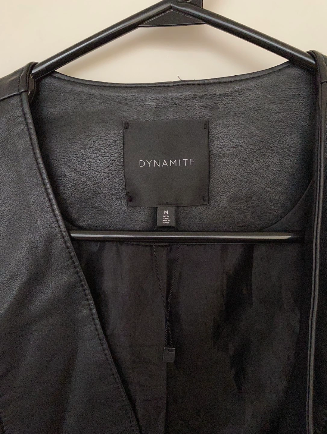 119Brand new, never been worn faux leather jacket from Dynamite. Colour is "jet black" and it's a size medium. Short style with suede sides. Regular 60$