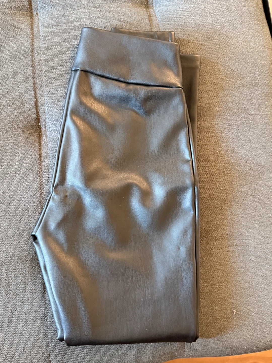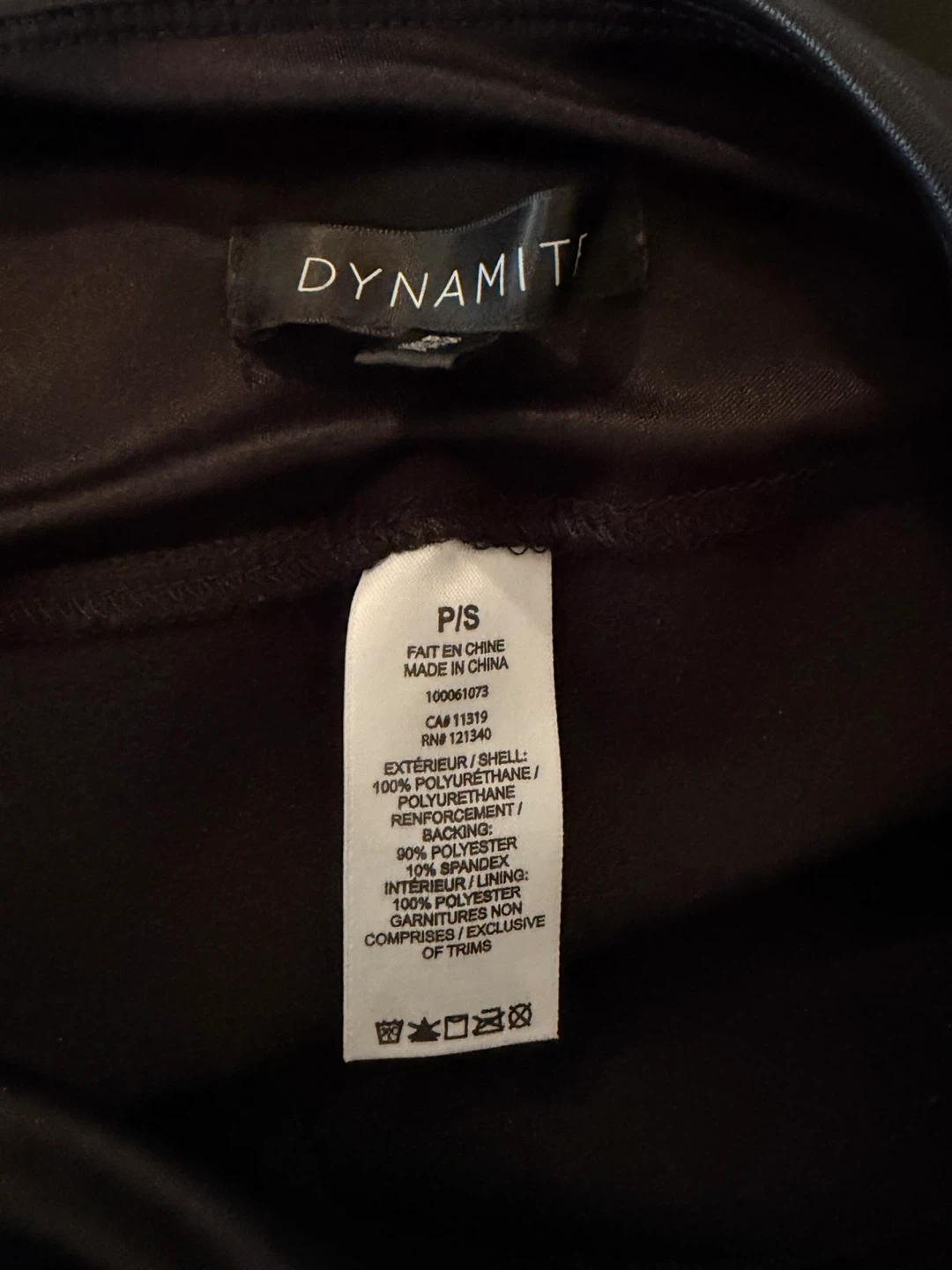 65Selling a pair of Dynamite faux leather leggings in size P/S! They're made of 100% polyurethane for the exterior/shell and 90% polyester with 10% spandex for the backing/interior/lining. A stylish addition to any wardrobe!