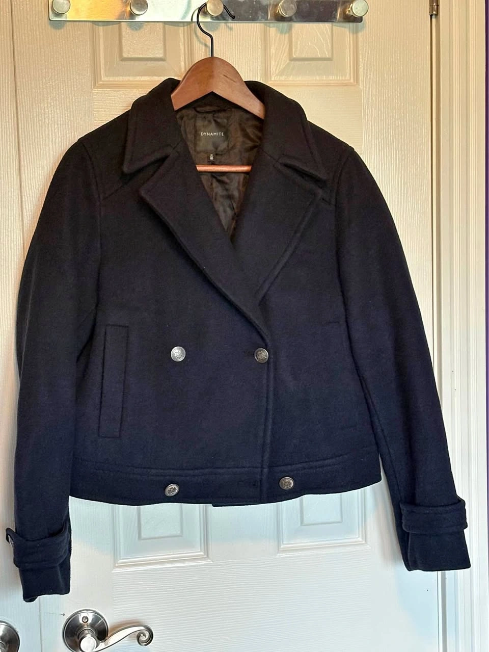 15Beautiful Cropped Peacoat from Dynamite. Worn twice. Doesn't fit me well, would love for it to go to someone who will love wearing it! Pick up in Etobicoke (near Royal York & Eglinton).