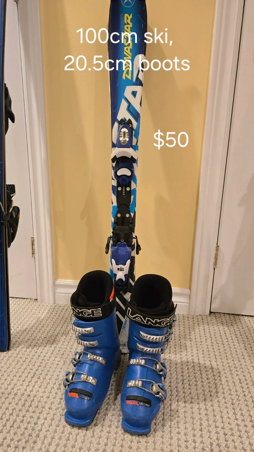 10Selling a pair of Dynastar Team Speed skis and Lange ski boots. The skis are 100cm. Boots are 20.5cm. Great for hitting the slopes!