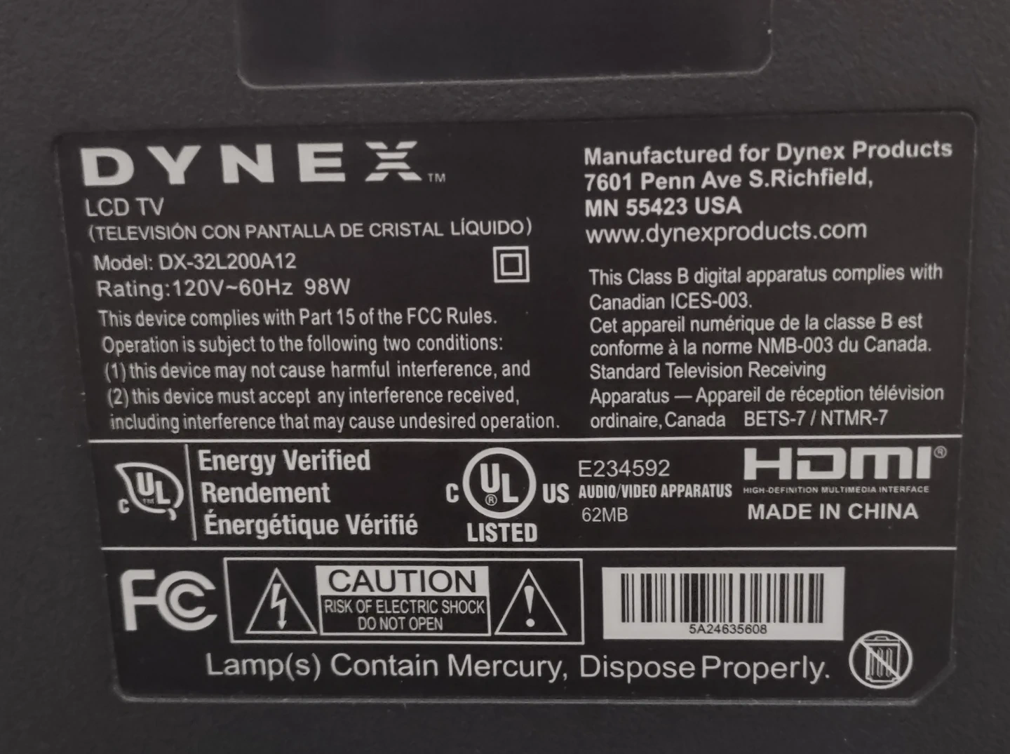 DYNEX 32" LCD TV - DX-32L200A12