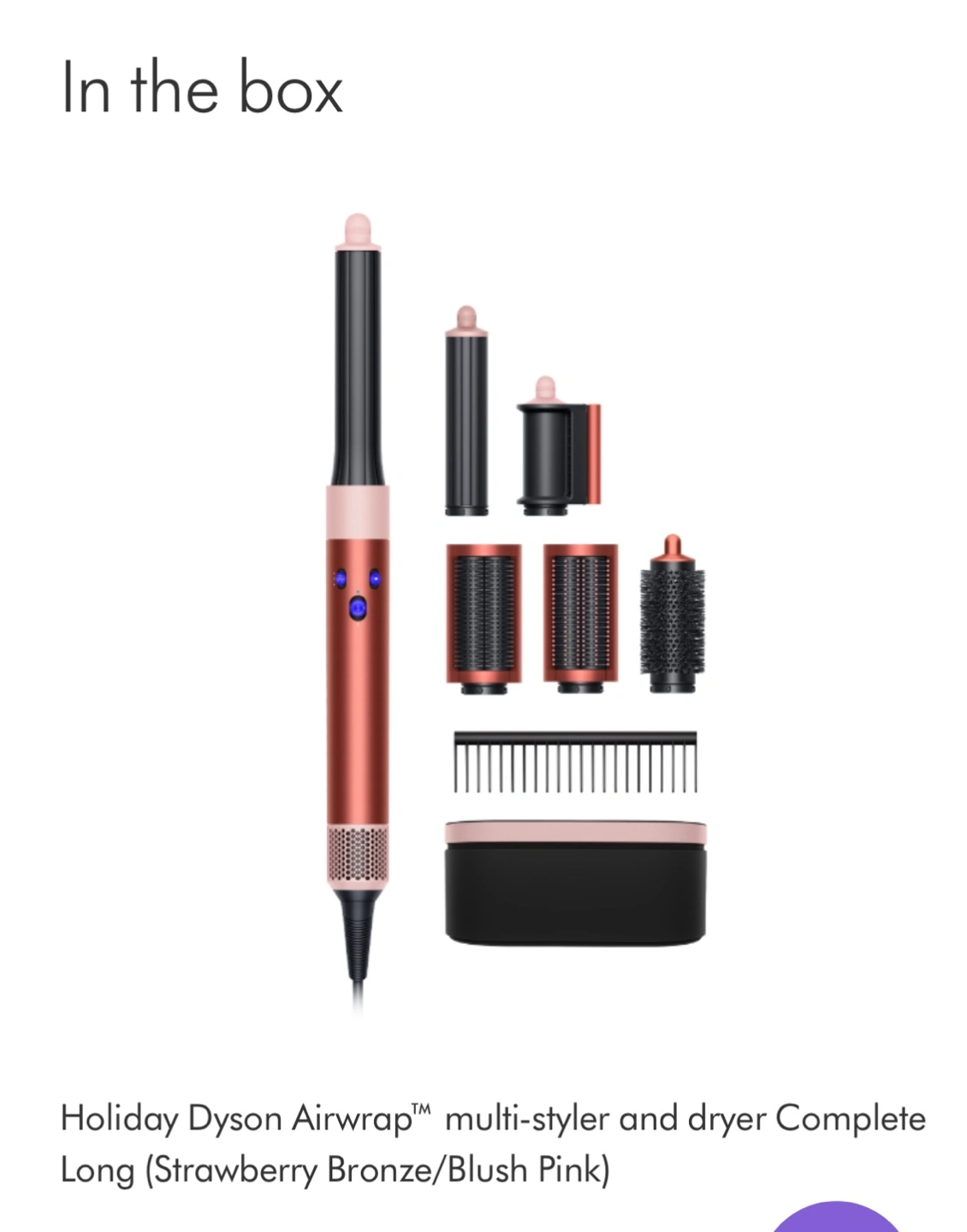 Dyson Airwrap multi-styler and dryer. Includes multiple attachments. Rose gold colour. Complete set in original packaging. Not used, just opened and could not return.