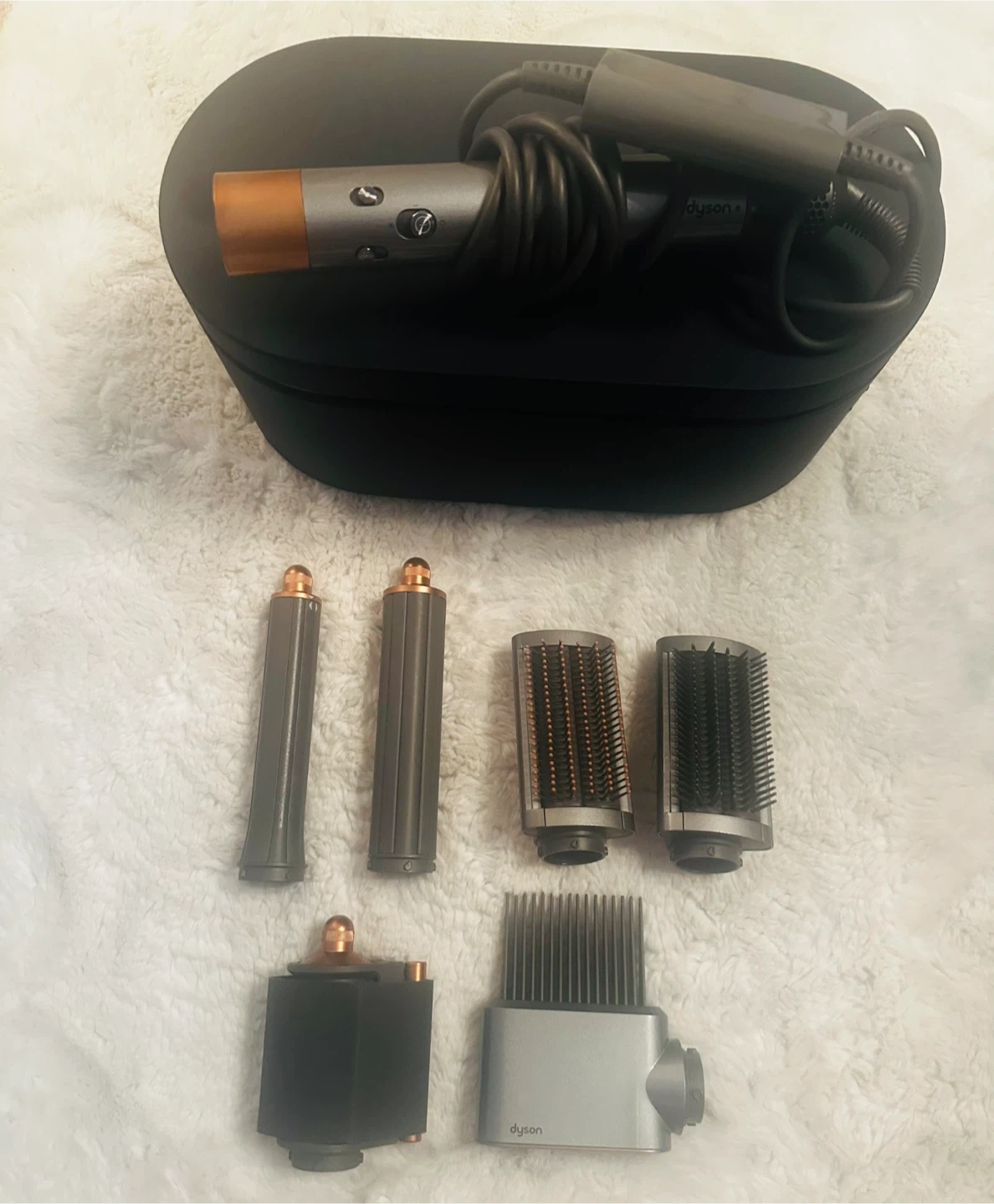 10Selling a complete Dyson Airwrap multi-styler set! It comes with all the attachments and the original case, so it's perfect for keeping everything organized. If you're looking to upgrade your hair styling routine, this is a great option!