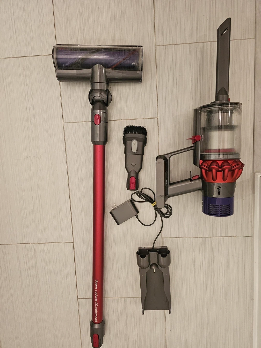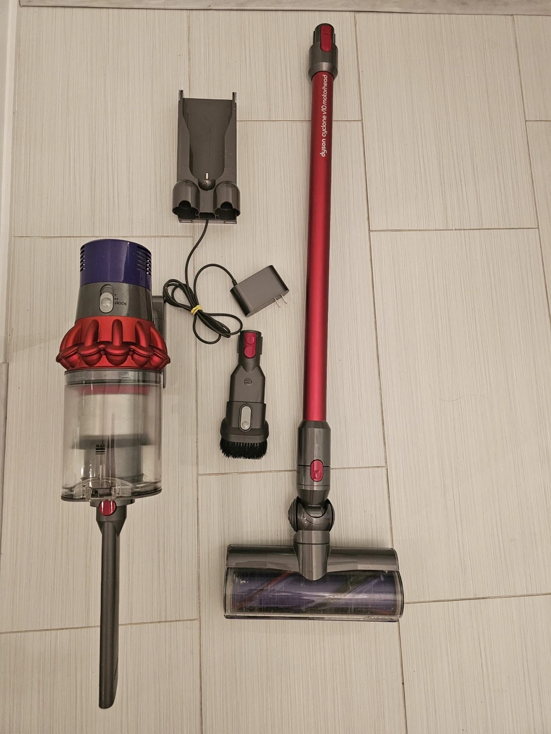 471In great condition Dyson Cyclone V10 cordless stick vacuum. It has 3 suction modes and comes with all attachments. Selling because i purchased an upgraded version. This is not refurbished. It is in excellent condition.