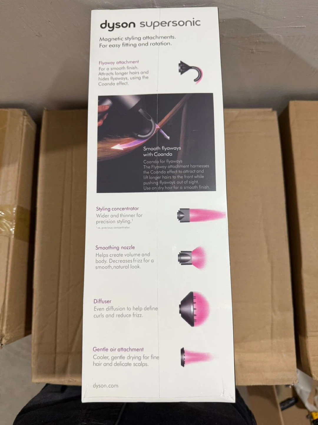 28Selling a Dyson Supersonic hair dryer brand new! It comes with all the magnetic styling attachments for easy fitting and rotation. It helps attract longer hairs and hides flyaways for a smooth finish using the Coanda effect. Included are: - Flyaway attachment - Smoothing nozzle - Styling concentrator - Diffuser - Gentle air attachment Fast drying with no extreme heat, engineered for different hair types