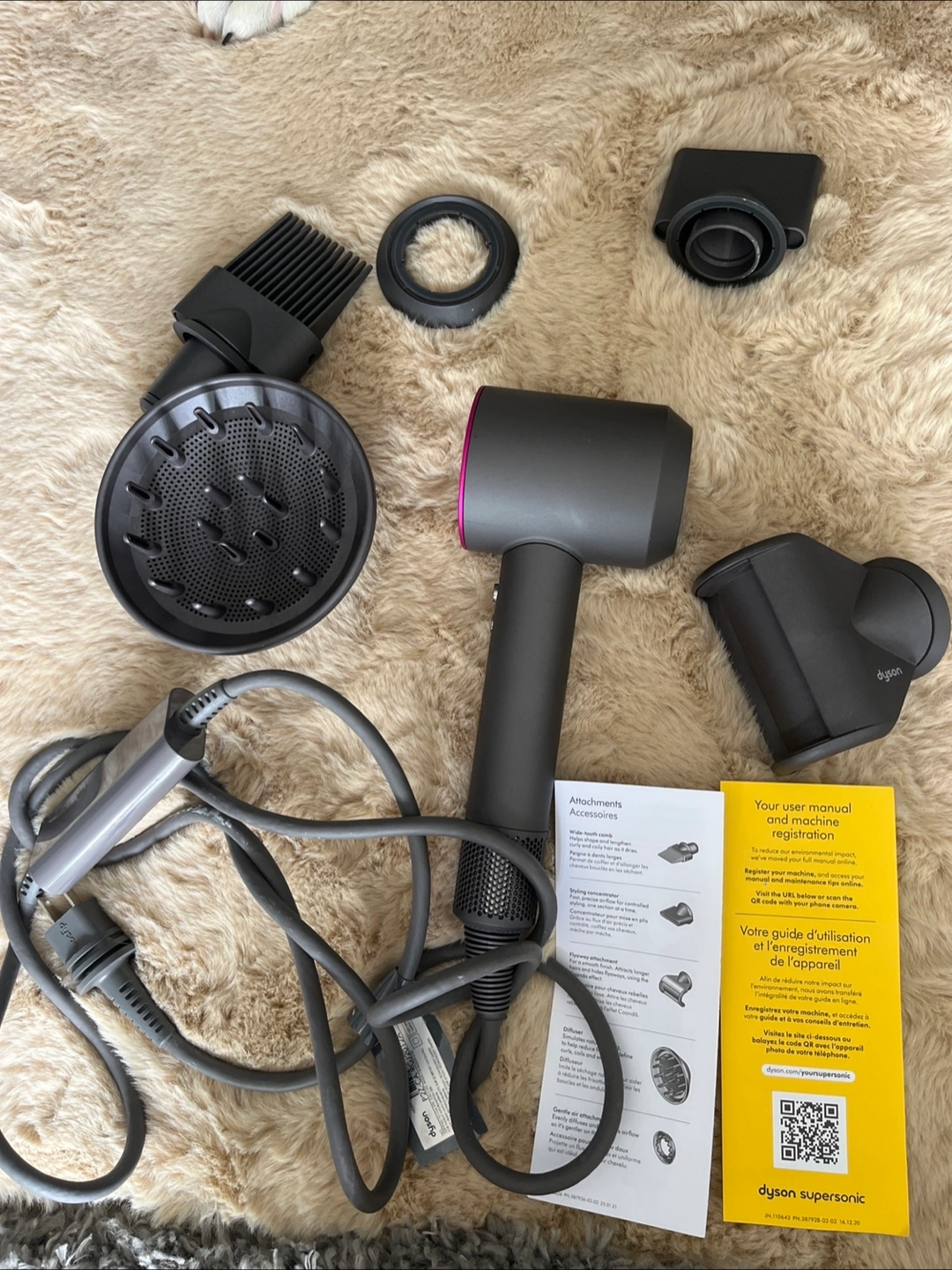 50Dyson Supersonic hair dryer. Iron/Fuchsia colour. Purchased from sephora in March, used a few times. Works perfectly. Condition- Brand new All parts included Purchased for 537.00$