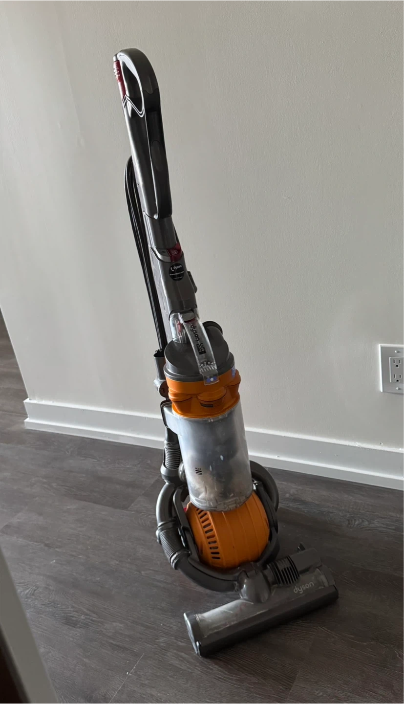 37Dyson vacuum, comes with detachable tube for tight spots. Powerful suction. Could use some grease on the rollerball but functional.