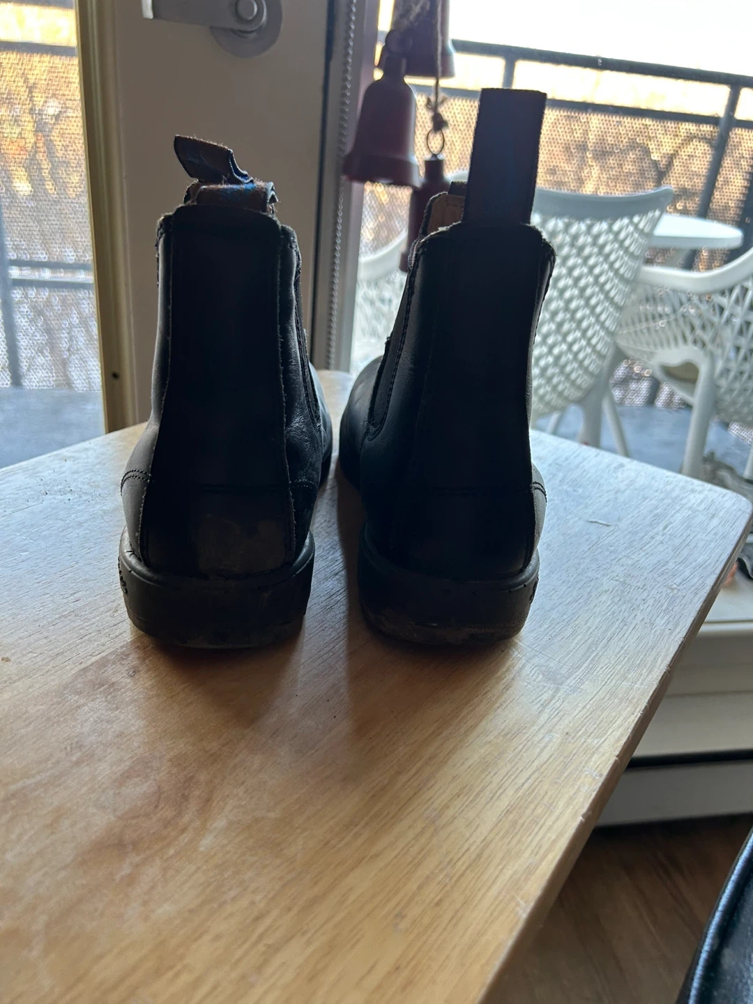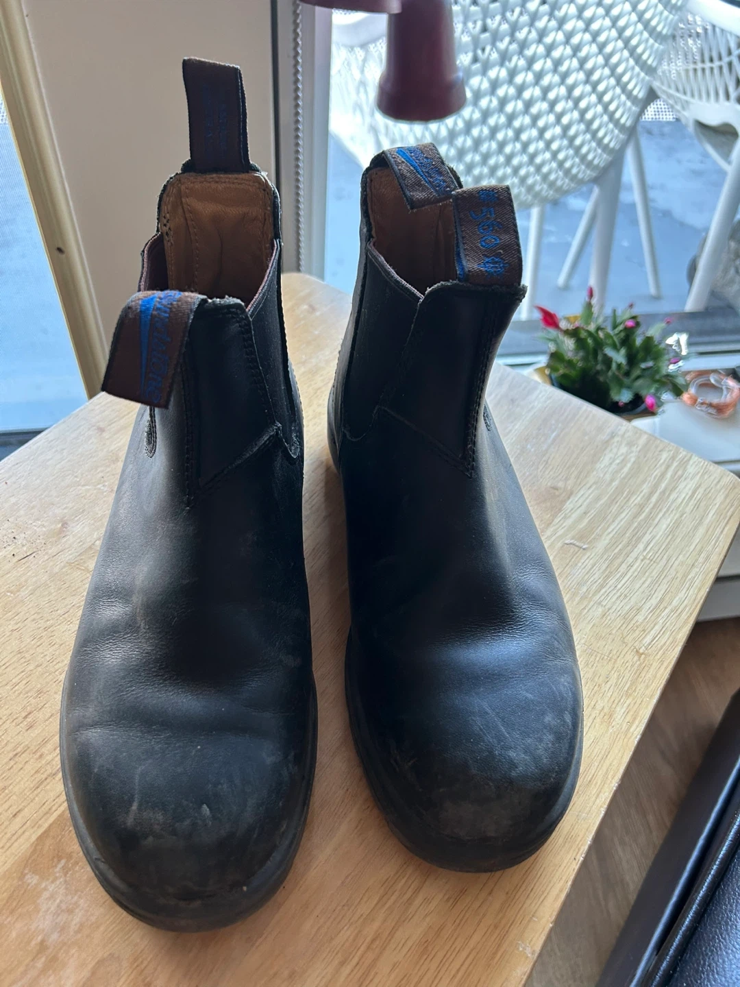 These are Blundstone 560 elastic-sided boots. They're made with black leather. They're a popular choice for work and casual wear. They're comfortable and durable!