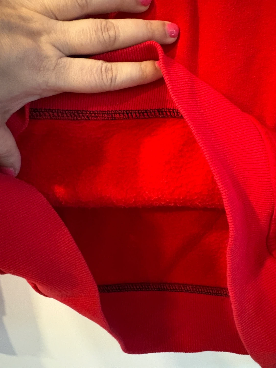 Red crewneck sweatshirt from Levi's. It's made from a soft fleece material, perfect for keeping warm. The classic logo tag is visible on the chest.