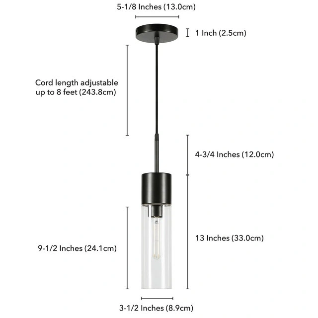 Add some class to your home with a pair of dimmable AllModern Hubbard 1 cylindrical chrome & glass pendant lights. Includes 2 extra E26 bulbs. Adjustable height, glass cylinders are 9.5 inches tall (13 inches including base), 3.5" diameter. Currently retail on Wayfair.ca for $134 each.