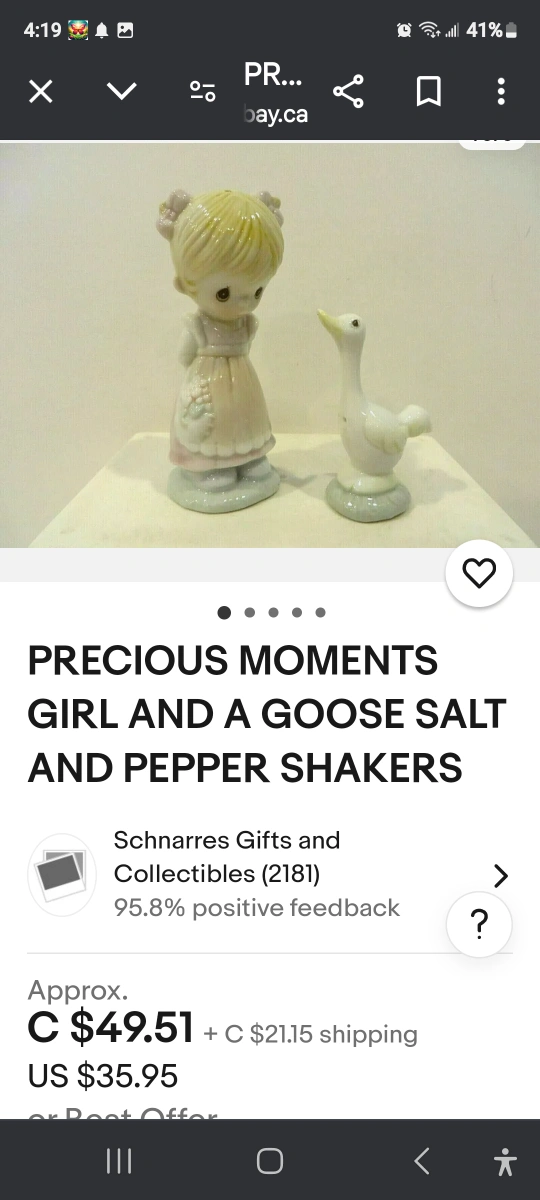 Precious Moments Girl and Goose Salt and Pepper Shakers