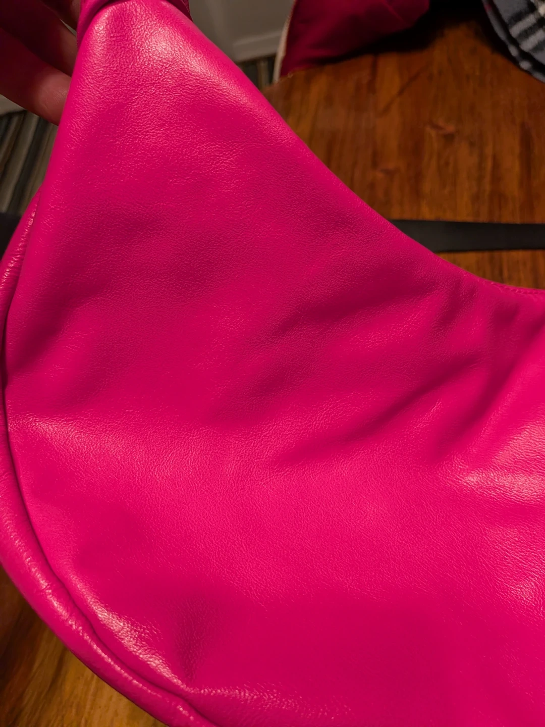 Hot Pink Crescent Shoulder Bag with Tassel Detail