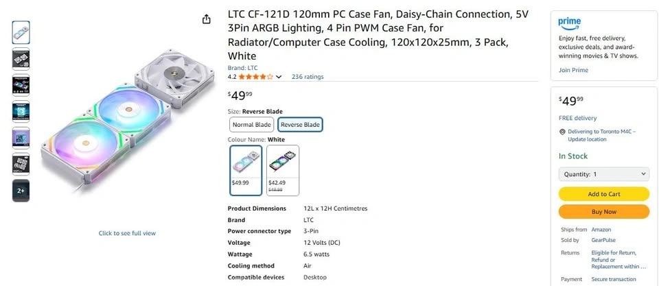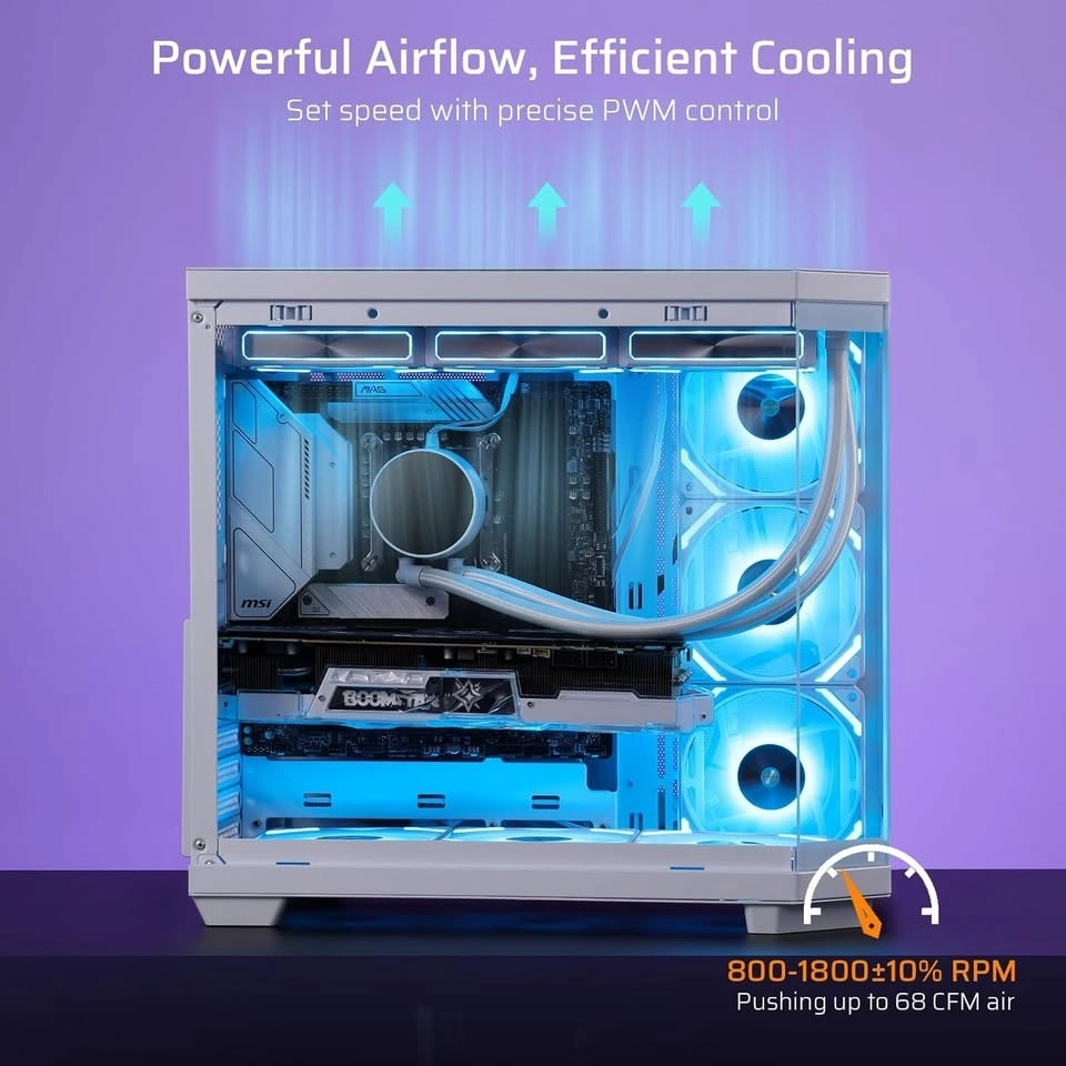 LTC CF-121D 120mm PC Case Fan, Daisy-Chain Connection, 5V 3Pin ARGB Lighting, 4 Pin PWM Case Fan, for Radiator/Computer Case Cooling, 120x120x25mm, 3 Pack, White