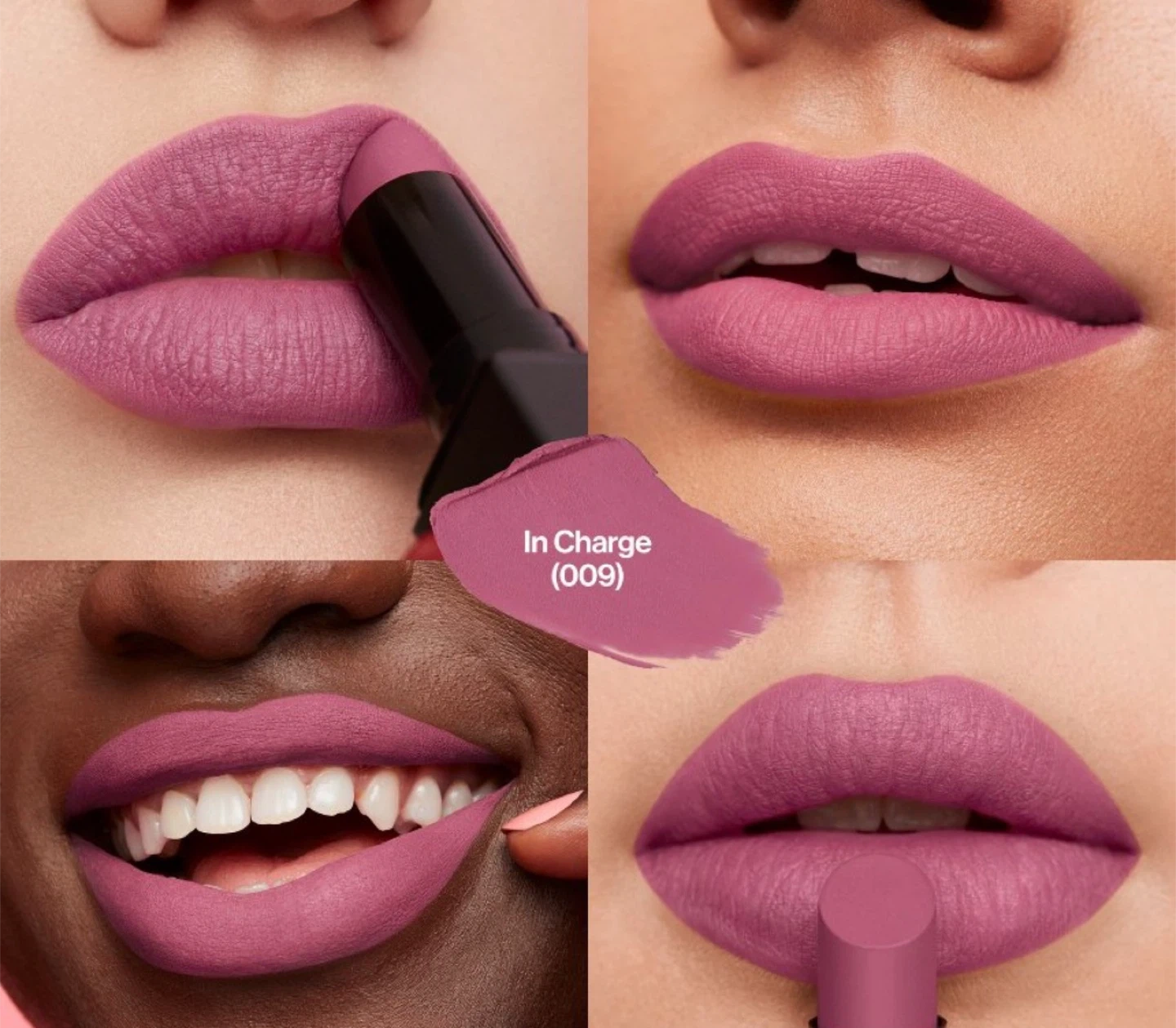 This is the Revlon ColorStay Suede Ink Lipstick in the shade 009, "In Charge." It's a matte liquid lipstick that provides long-lasting wear. The formula is designed for comfort and a smooth application.