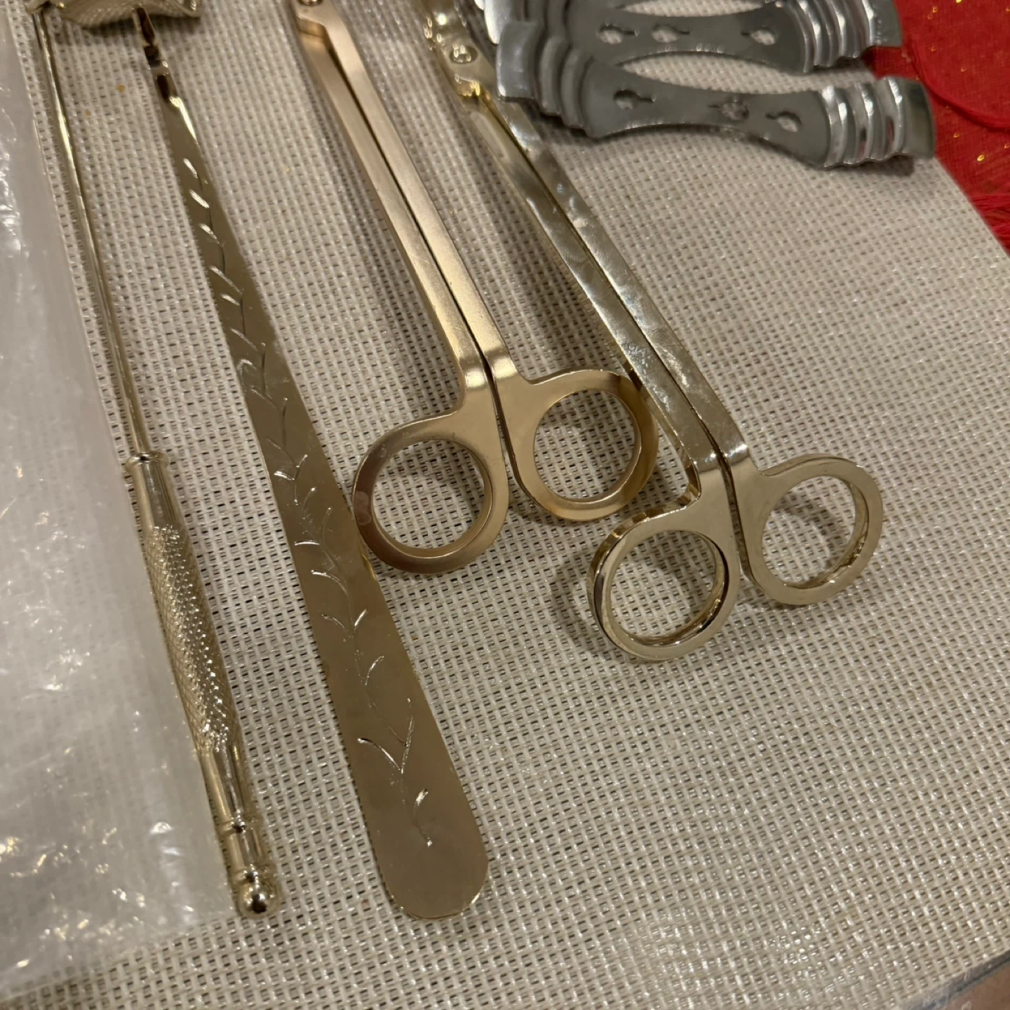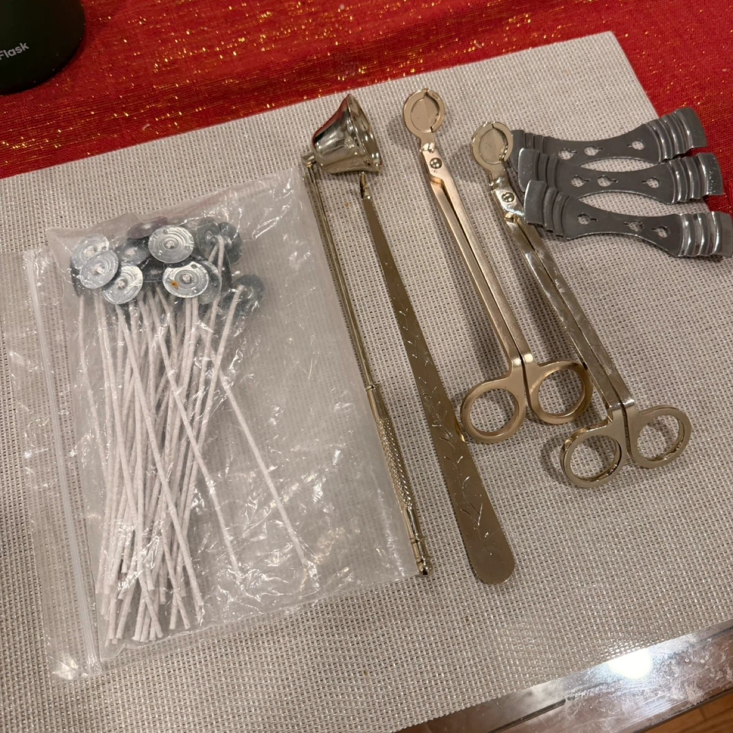 This set includes pre-tabbed candle wicks, wick centering tools, a wick dipper, and wick trimmers. It's great for DIY candle making projects. All tools are made of durable metal.