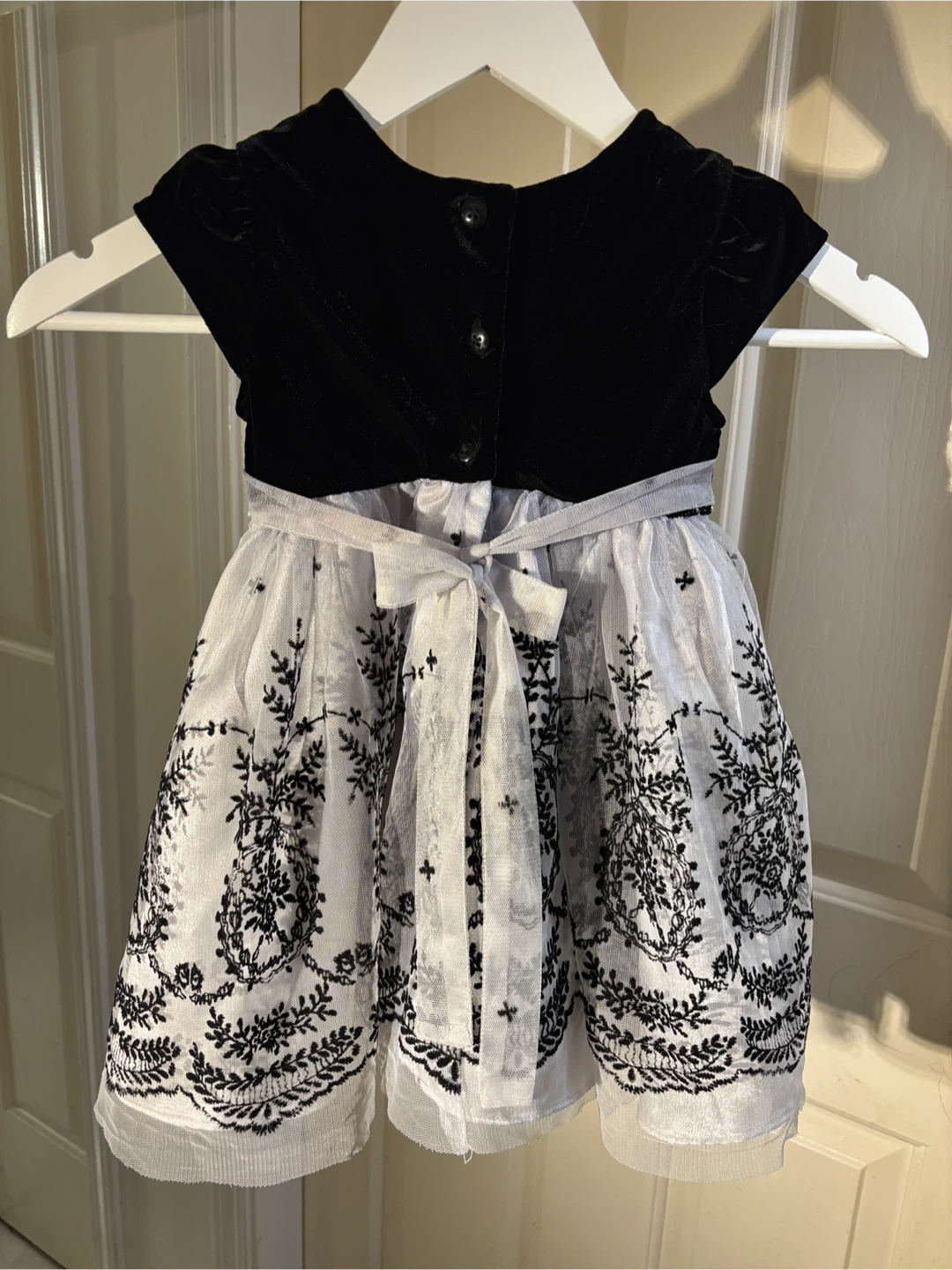 Girl’s Black Velvet & Soft Grey Dress 🖤