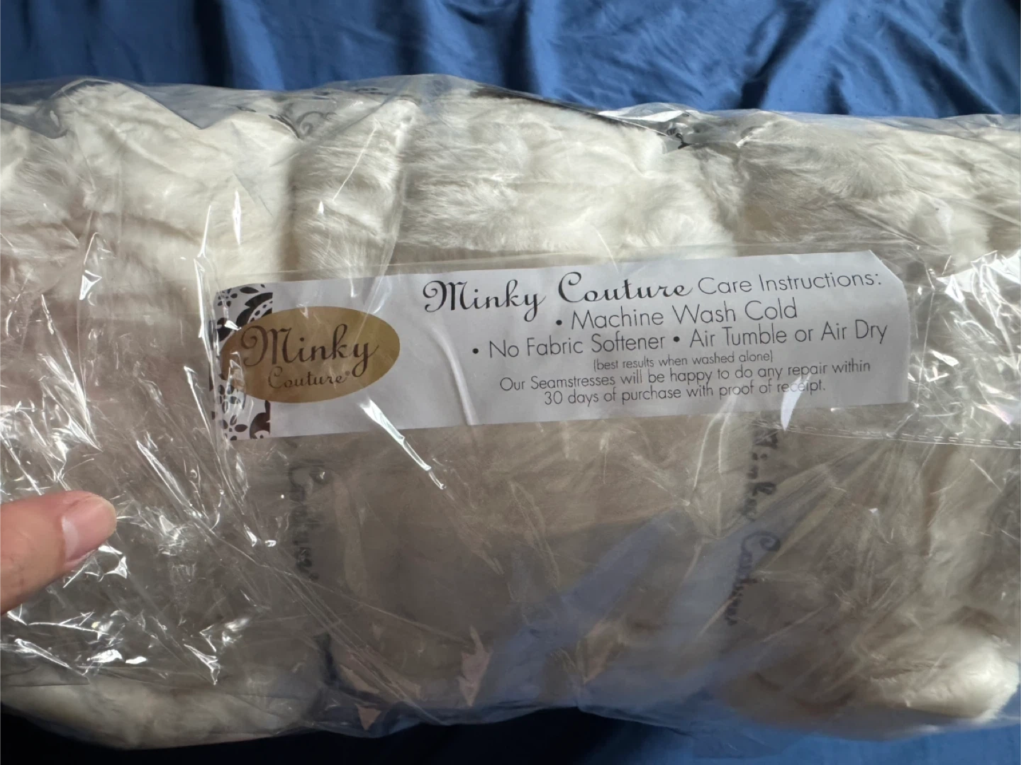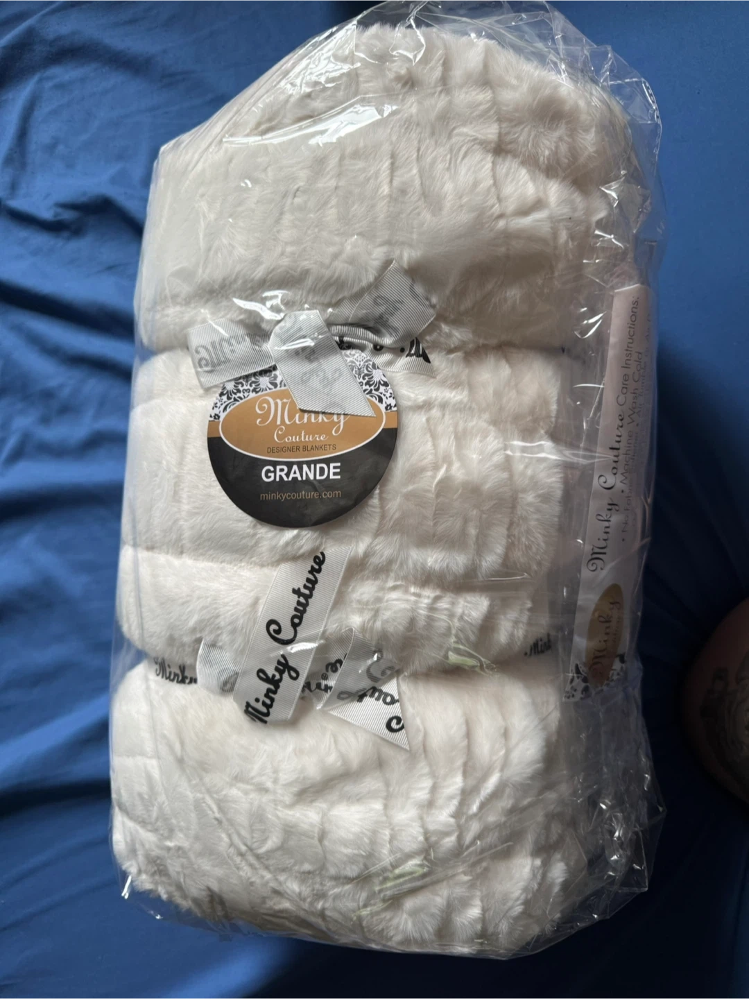 This Minky Couture Grande blanket is super plush and cozy. It's designed for ultimate comfort. Machine wash cold, no fabric softener. Air tumble or dry.