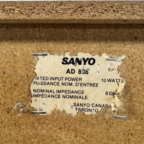 Pair of vintage Sanyo AD-838 speakers, made in Canada (Toronto). Classic compact passive speakers with wood cabinets and original fabric grilles. Fully tested and working.