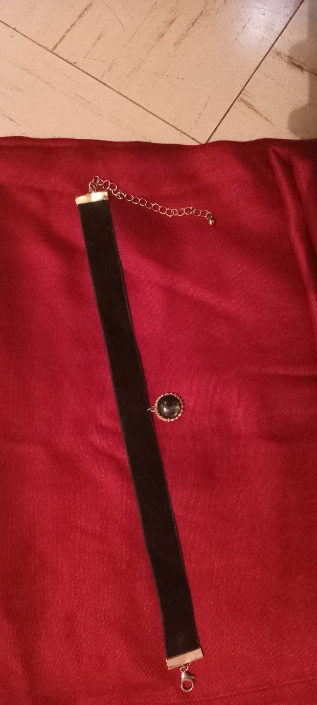 Black Velvet Choker Necklace with Stone Pendant