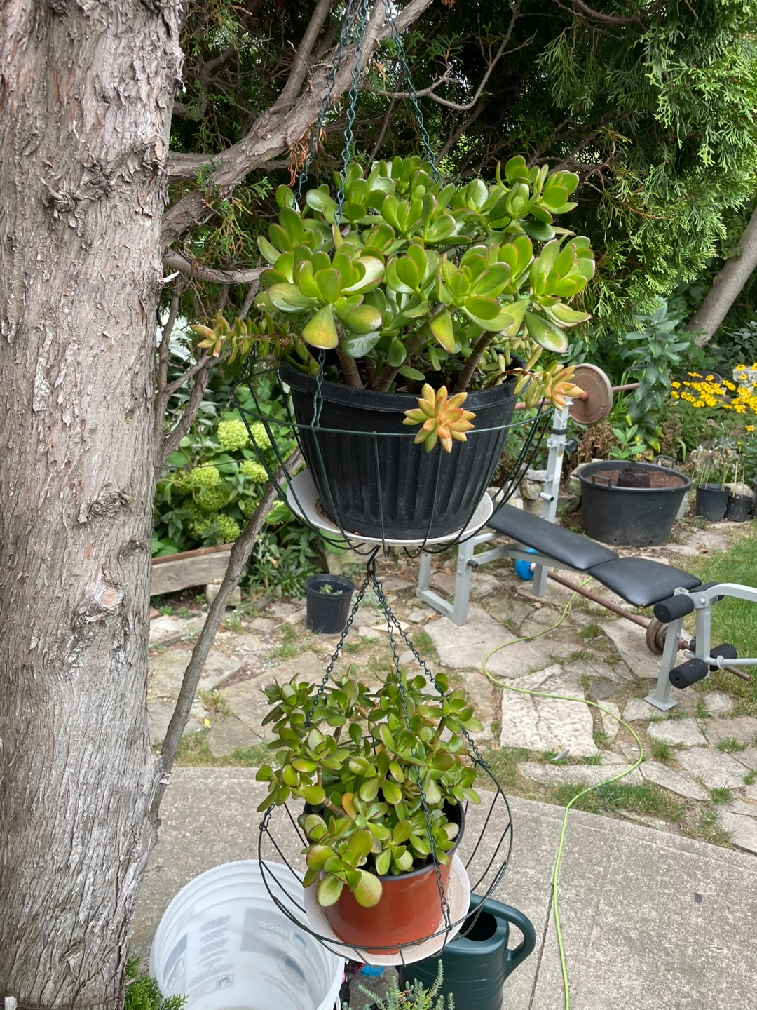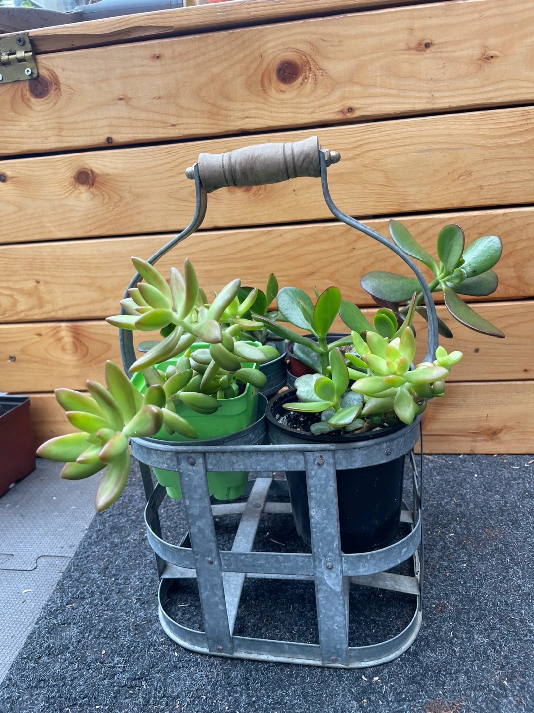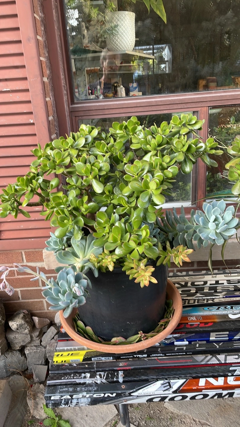 Many succulents for sale. Various sizes and types. Includes jade plants and other succulents. Some in individual pots, others in propagation trays. FROM $5