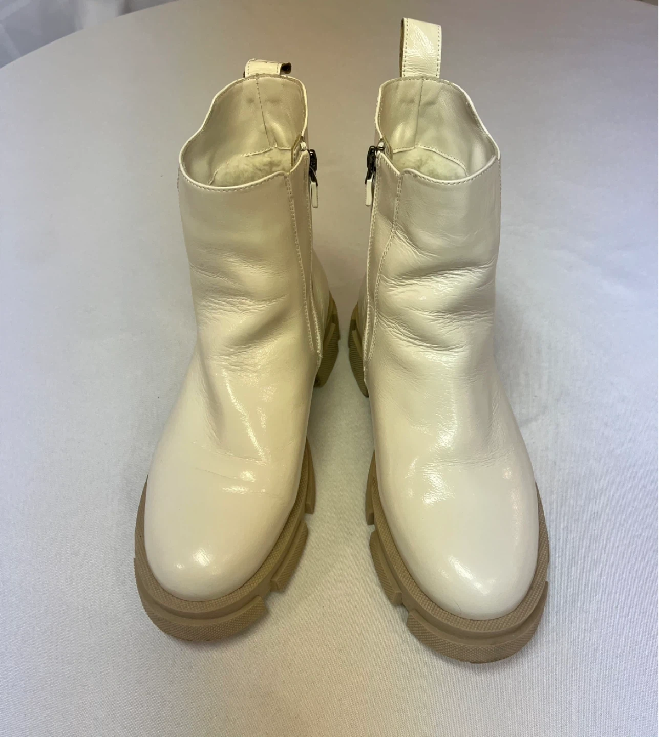 9.5 - Ladies Off White Patent Leather Boots