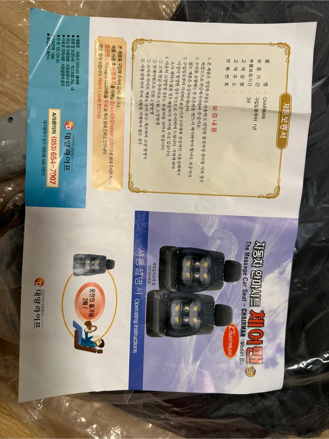 Selling a Chairman car seat massager, Model B. It comes with the operating instructions
