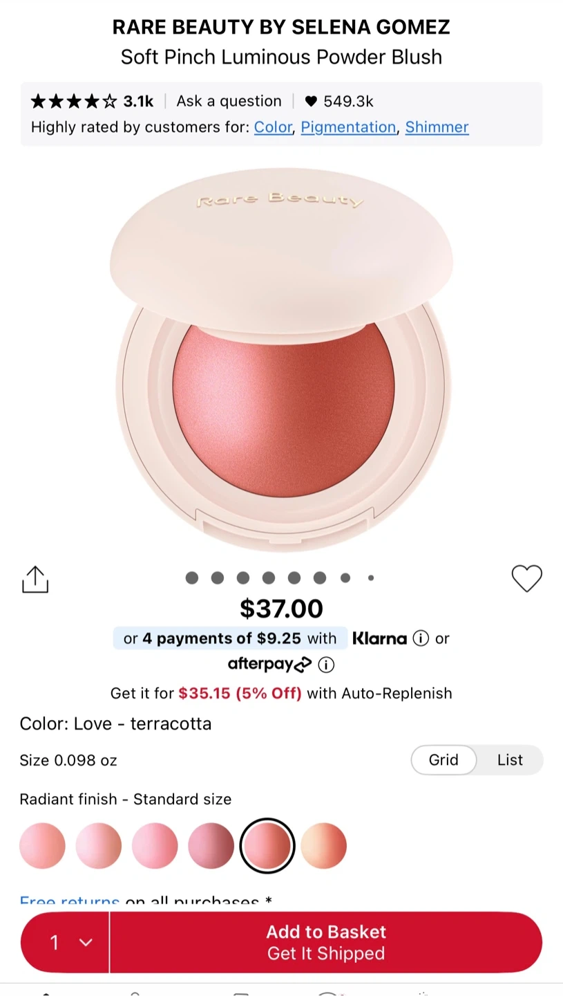 1. Soft Pinch Luminous Powder Blush (Shade: Love): $25 (Retails: $37+tax)