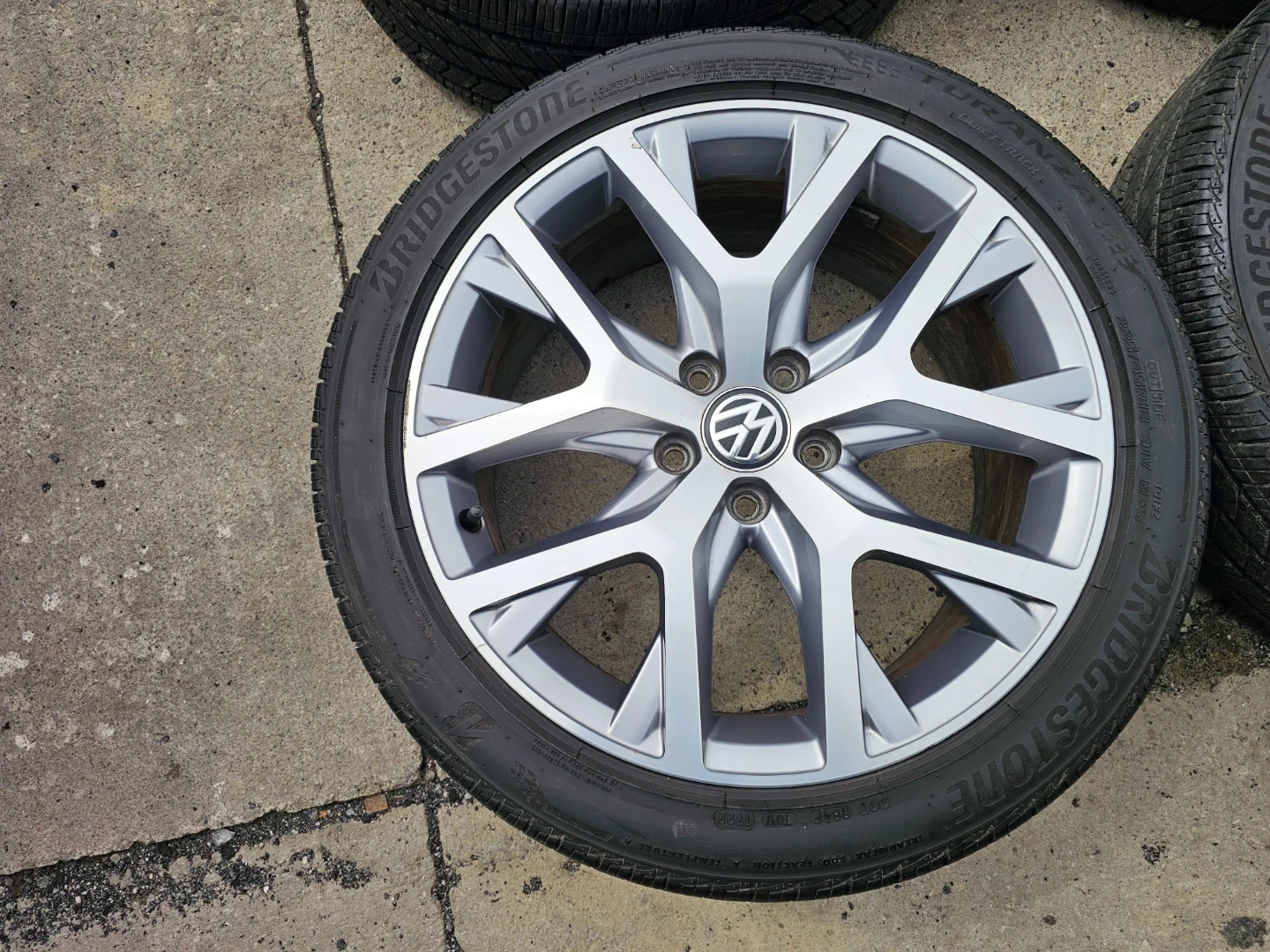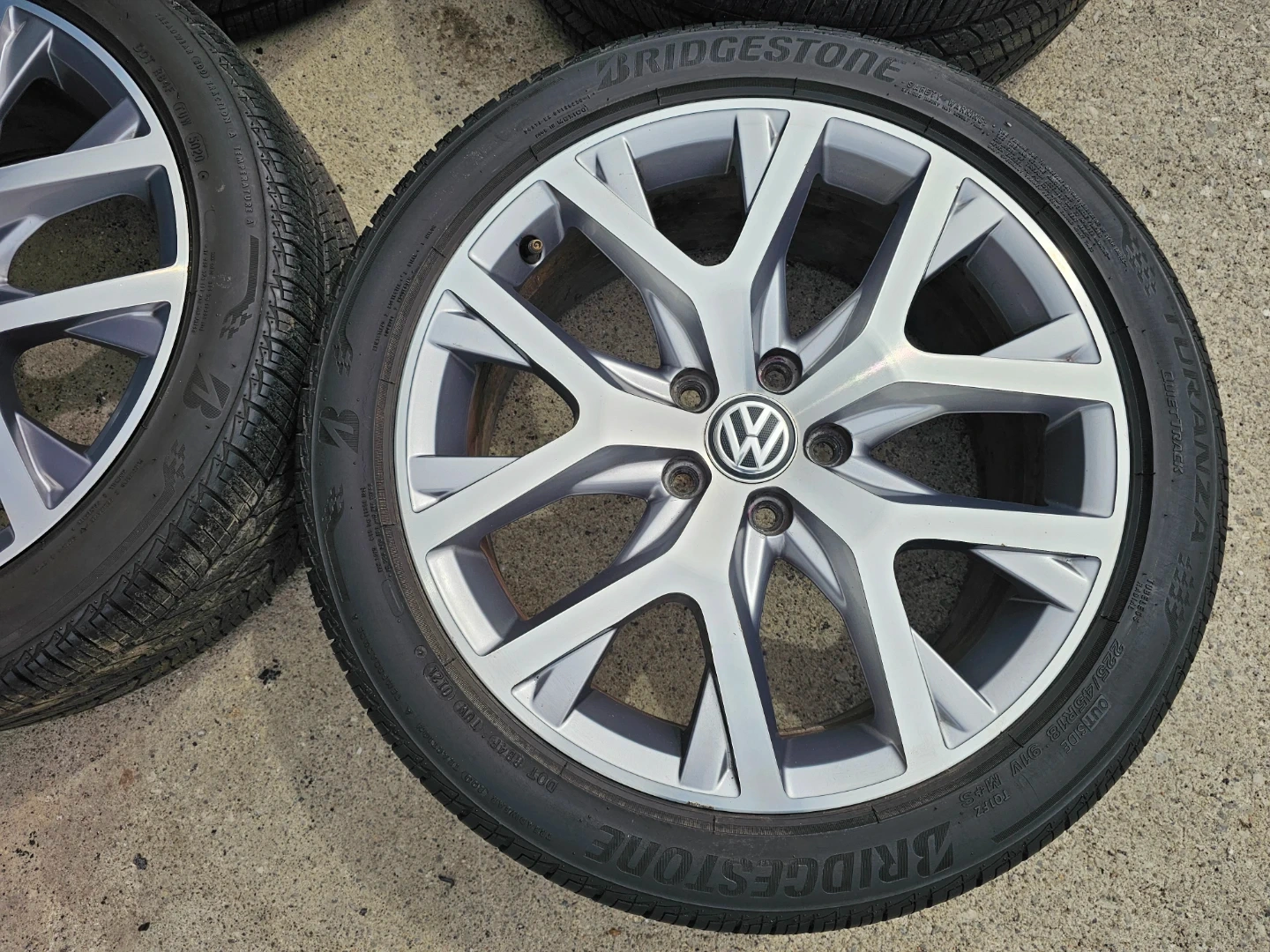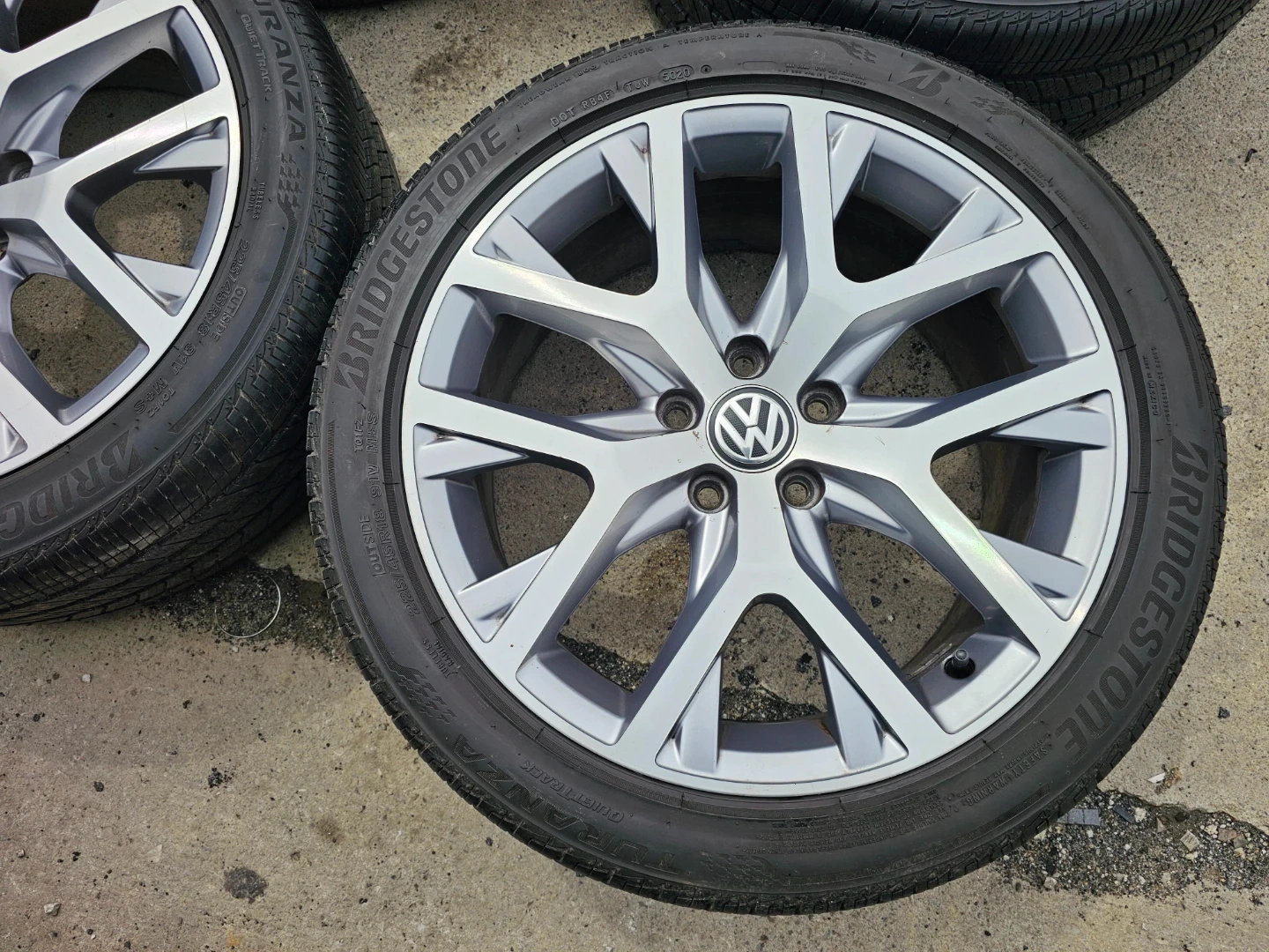 Set of 4 original 18" volkswagen golf (alltrack) rims and Bridgestone all season tires 225/45 R18. Rims and tires are in good shape, no bend, no cracks, no damage. Tires are in good condition