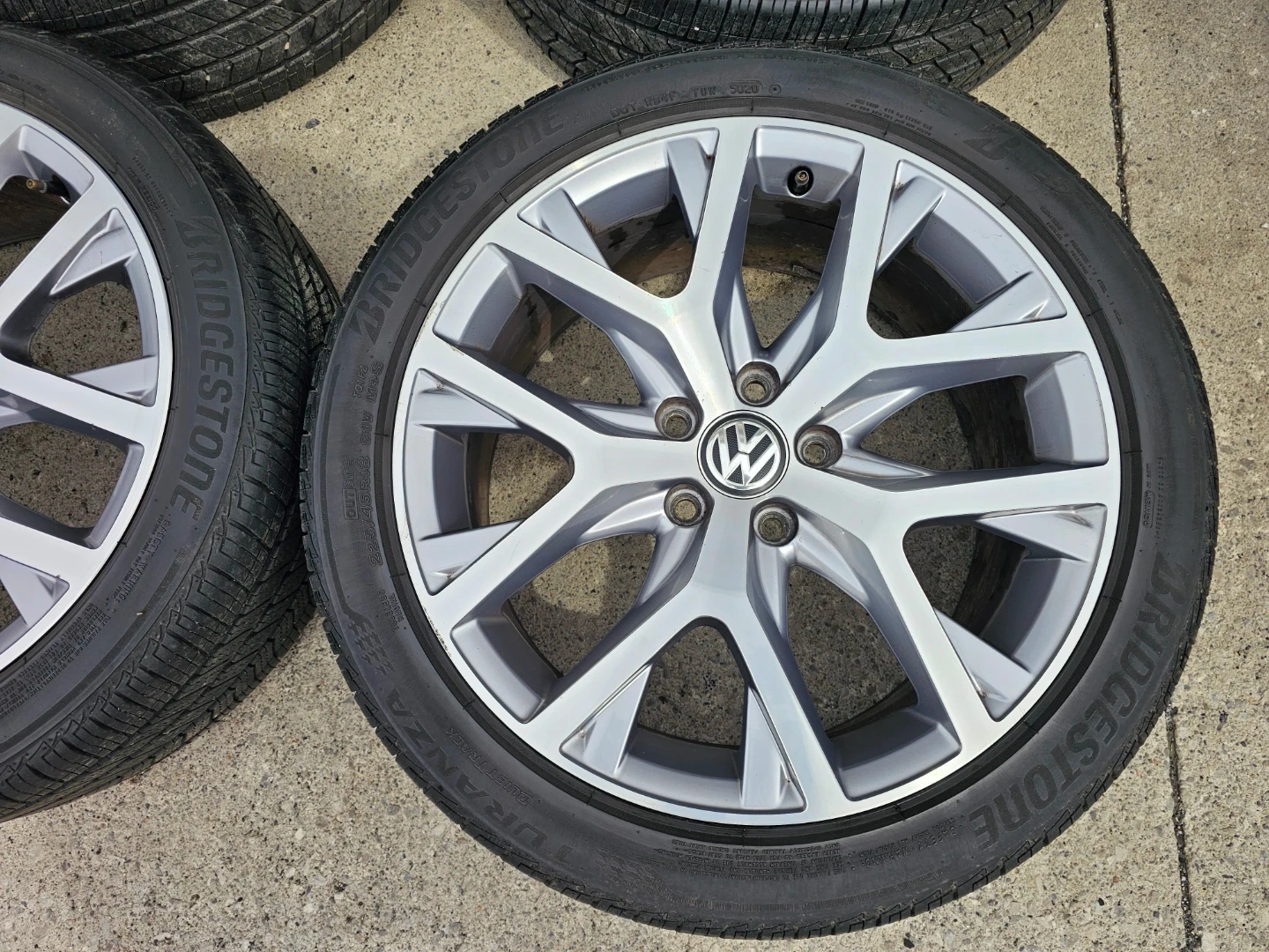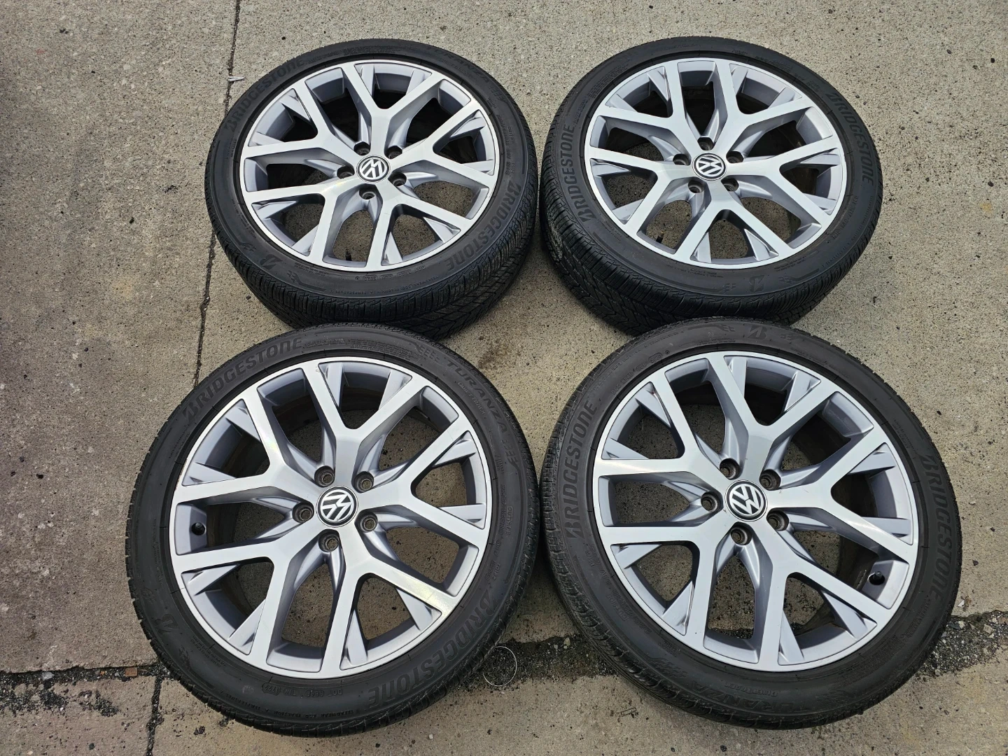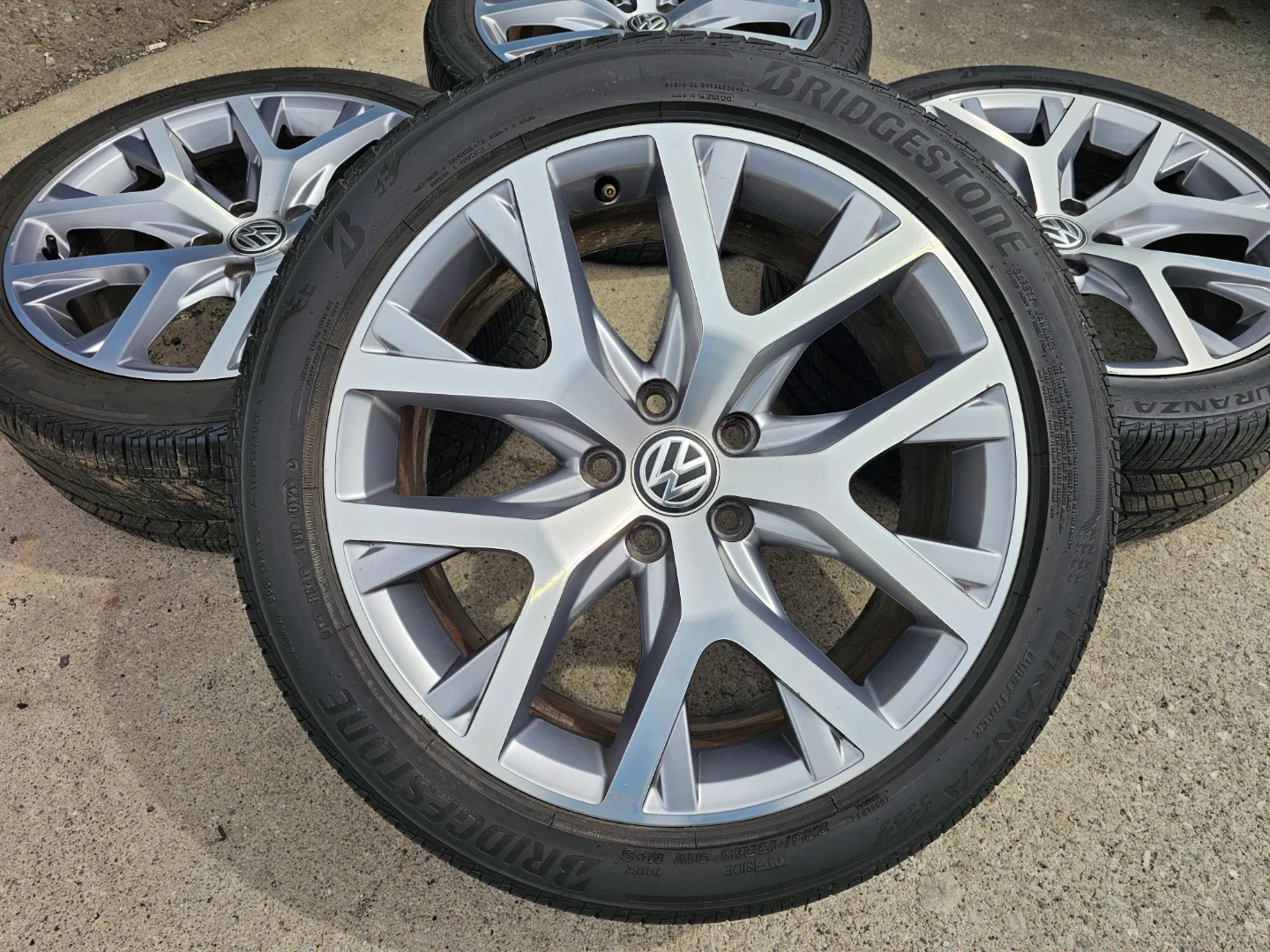 Set of 4 original 18" volkswagen golf (alltrack) rims and Bridgestone all season tires 225/45 R18. Rims and tires are in good shape, no bend, no cracks, no damage. Tires are in good condition