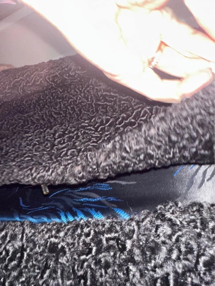 Elegant vintage genuine Persian lamb Ted Sisson black coat with a curly textured fabric and mink fur trim on the collar and cuffs. The lining is silky satin. Overall excellent vintage condition, only minor flaw is the top button has lost some fur and its elastic hook closure is brittle, priced accordingly. Fits like a medium. Pickup SW / Terwillegar / meet on campus most weekdays. Check my other listings, bundle for deals!