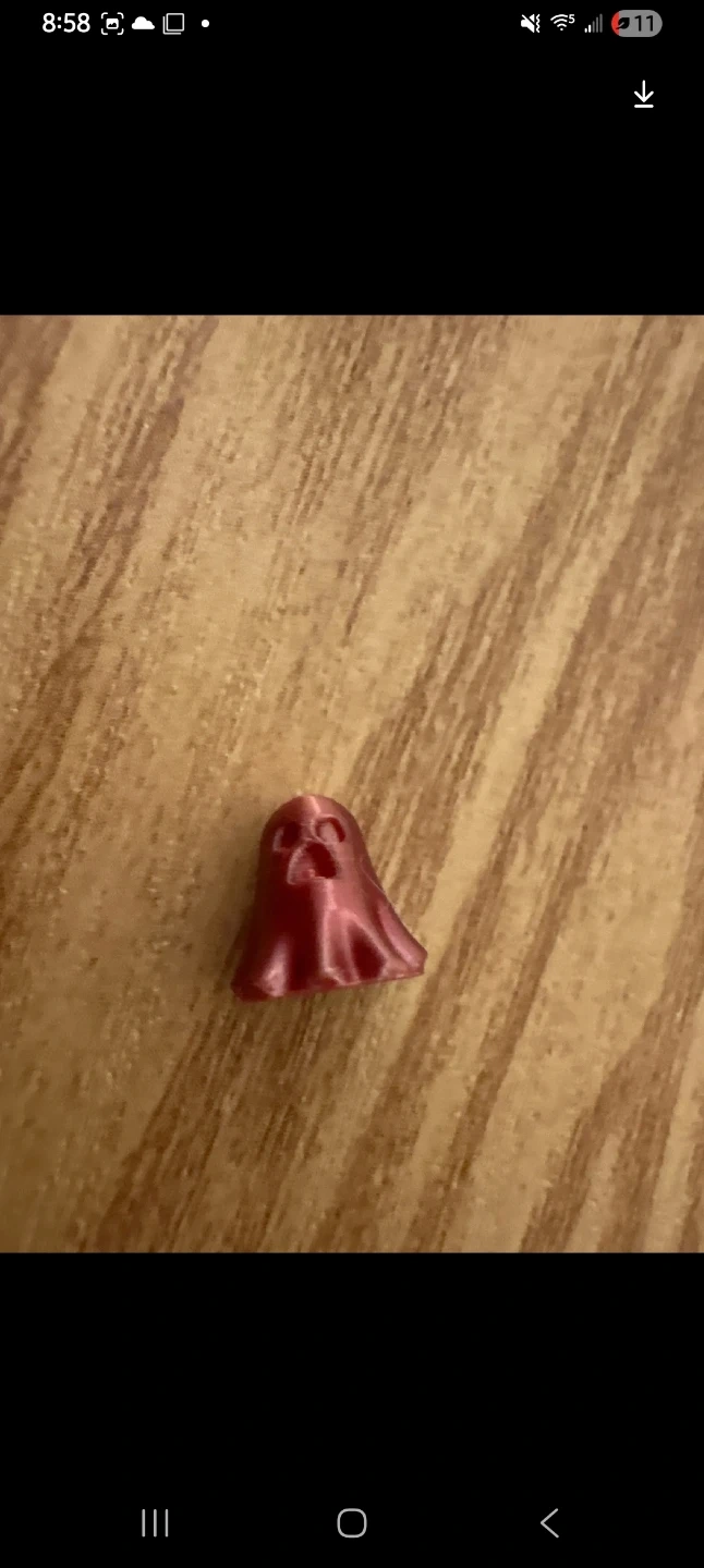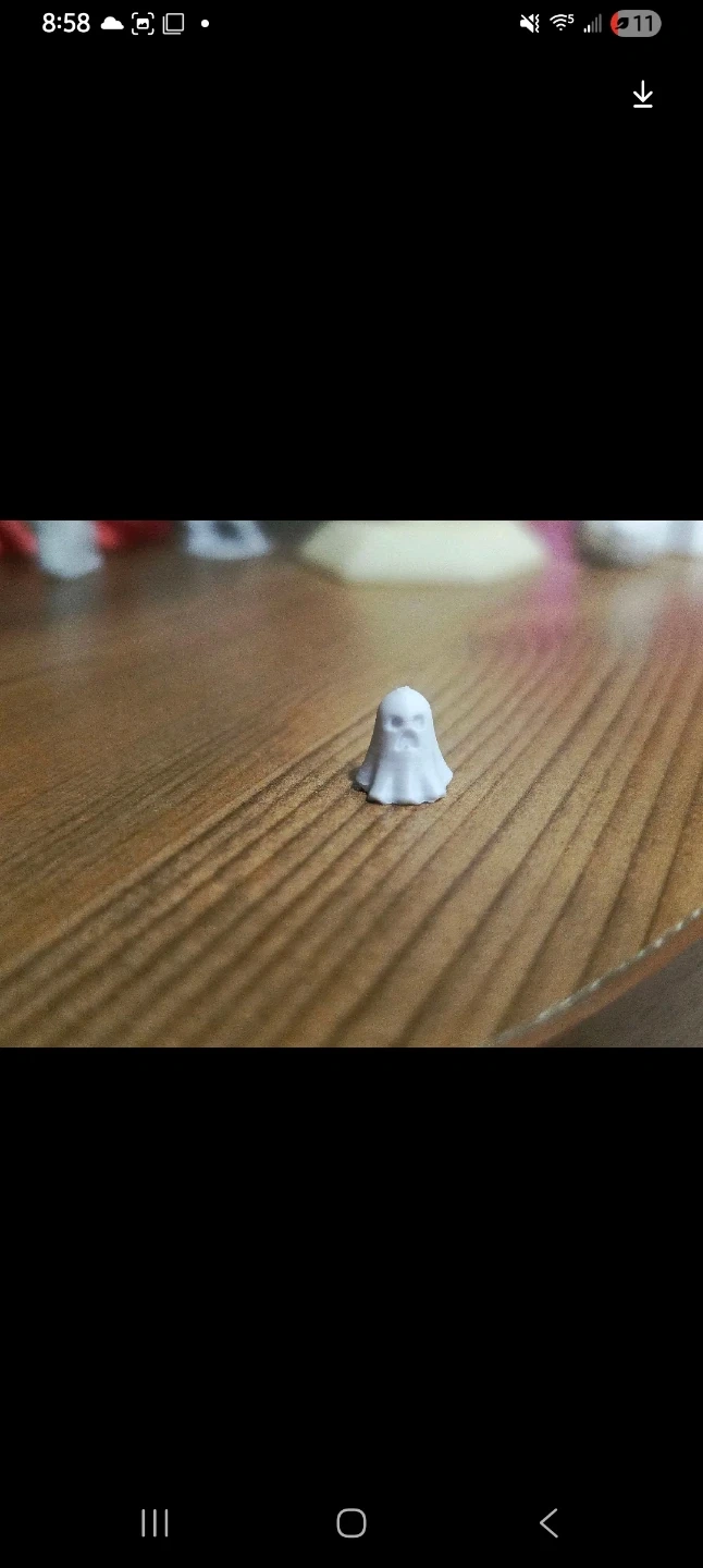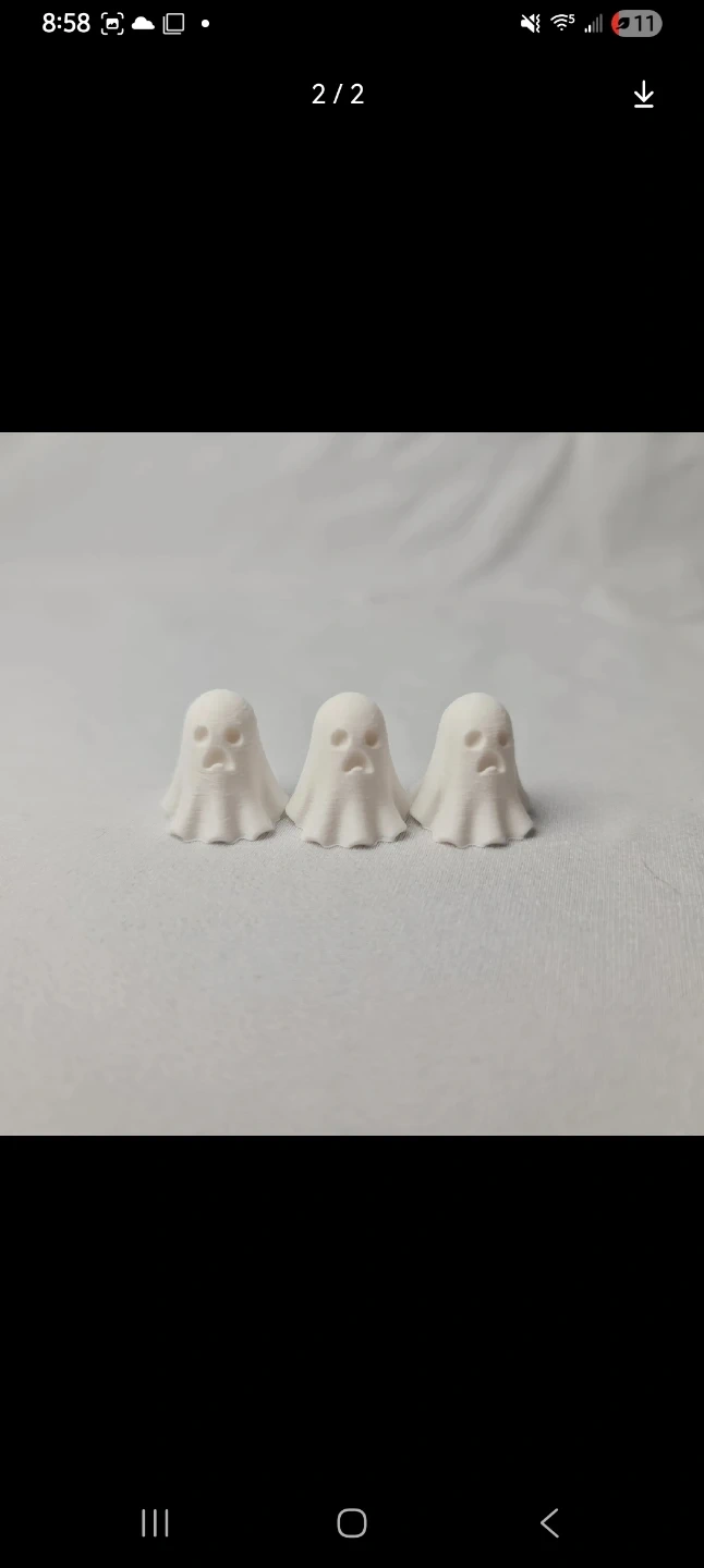 miniature ghost figurines, perfect for Halloween decorations or crafts. They're made of a 3d print material and have a fun, spooky design. Add some playful fright to your space! Comes in different colours