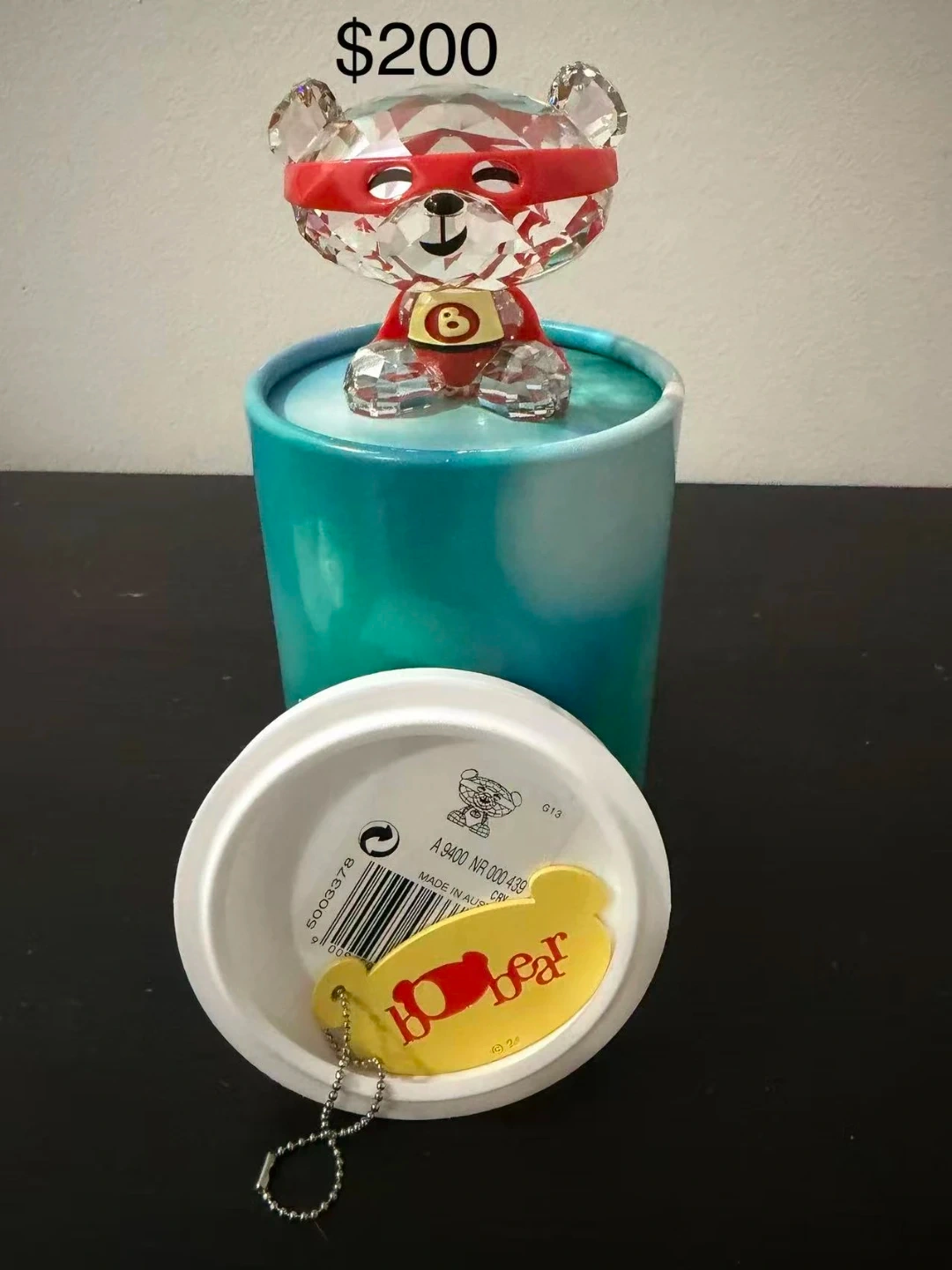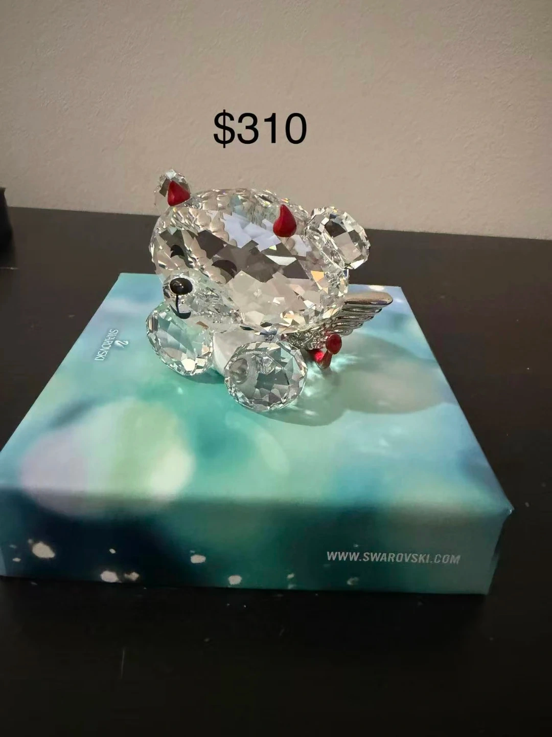 Sparkling crystal figurine of a bear with wings and devil horns. Includes original Swarovski box. Made in Austria. All are brand new.