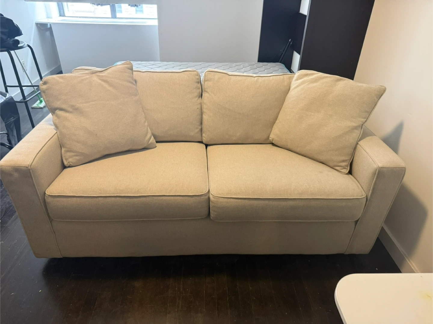 Beige Fabric Loveseat Sofa with 4 Cushions