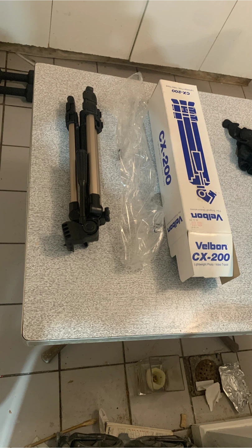 This is a Velbon CX-200 tripod. It's lightweight and suitable for both photos and videos. It includes the original box.