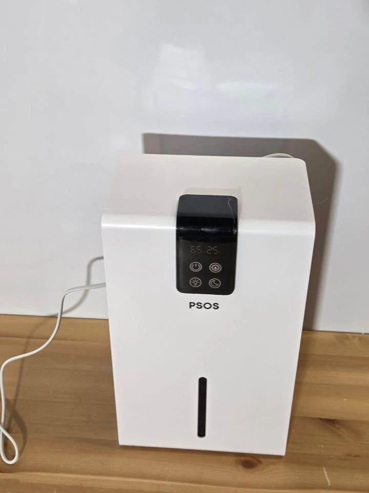 PSOS dehumidifier in good condition. Works well and helps remove excess moisture from the air. Great for bedroom, bathroom, basement, RV, or small apartment. Designed for spaces up to 1000 sq.ft with a large 98 oz water tank and auto shut-off when the tank is full. Quiet operation makes it suitable for bedrooms. Also features a humidity display and 7-color ambient light for a relaxing atmosphere.