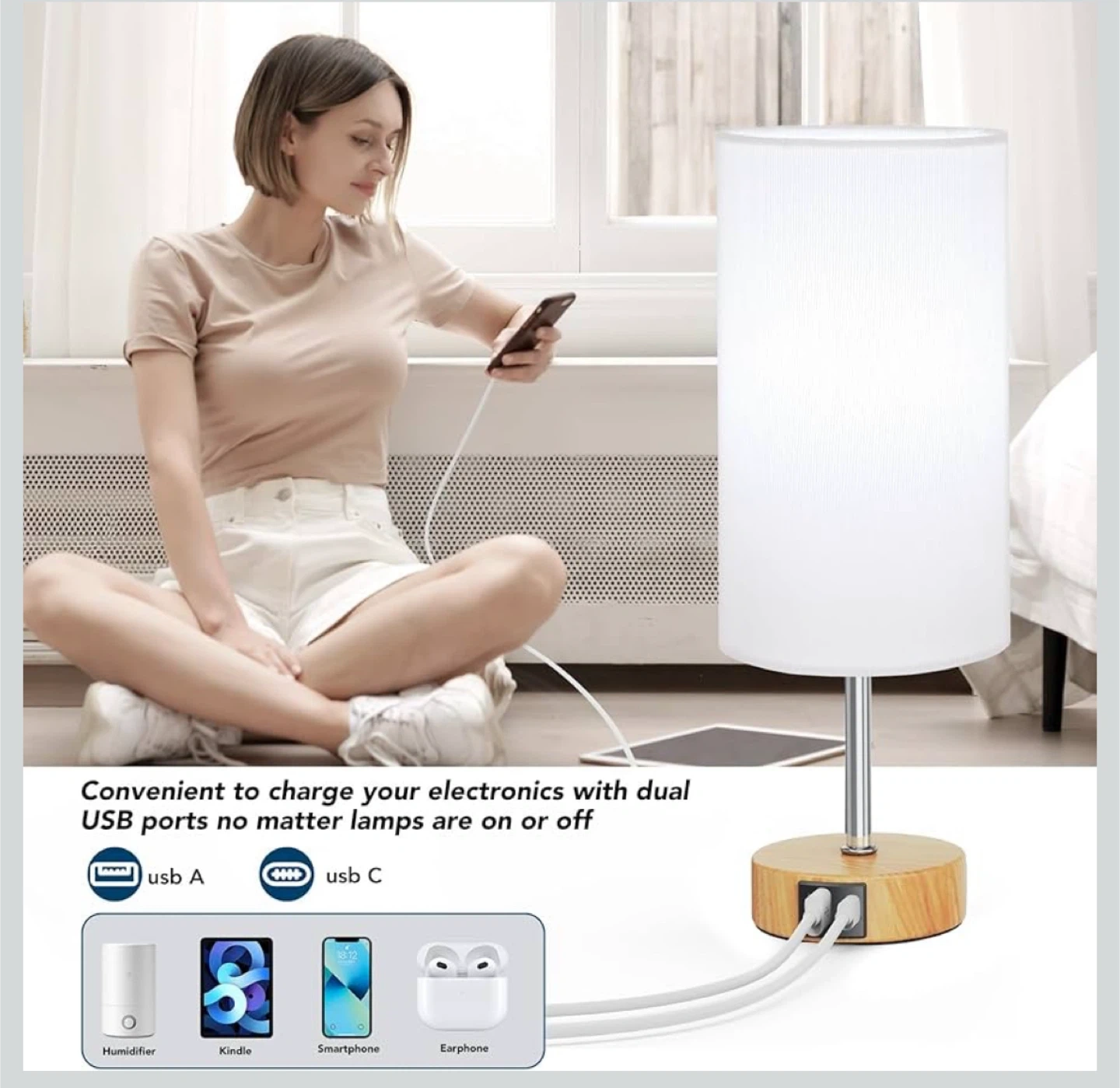 This is a new pack of touch control table lamps, featuring a 3-way dimmable function perfect for bedside use. These night lamps offer convenient touch control and adjustable brightness levels to create the perfect ambiance in your space. With dual USB ports, it's easy to charge devices while you relax.
