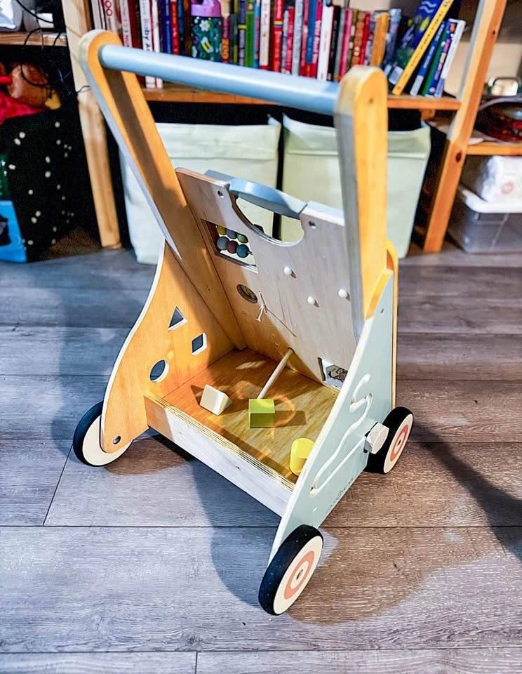 This stable and solid walker helps support your child's first steps, allowing them to explore with confidence. The front is packed with fun games, and the back offers space to carry toys or a favorite plush.