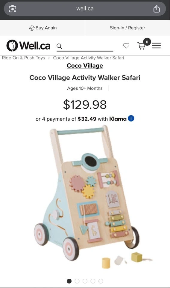 This Coco Village Wooden Activity Walker in the Safari theme is perfect for little ones aged 10 months and up. Made from premium birch plywood, it features an exclusive design with varied activities to engage senses and aid cognitive development. It's ASTM / SOR / CE Certified for safety.