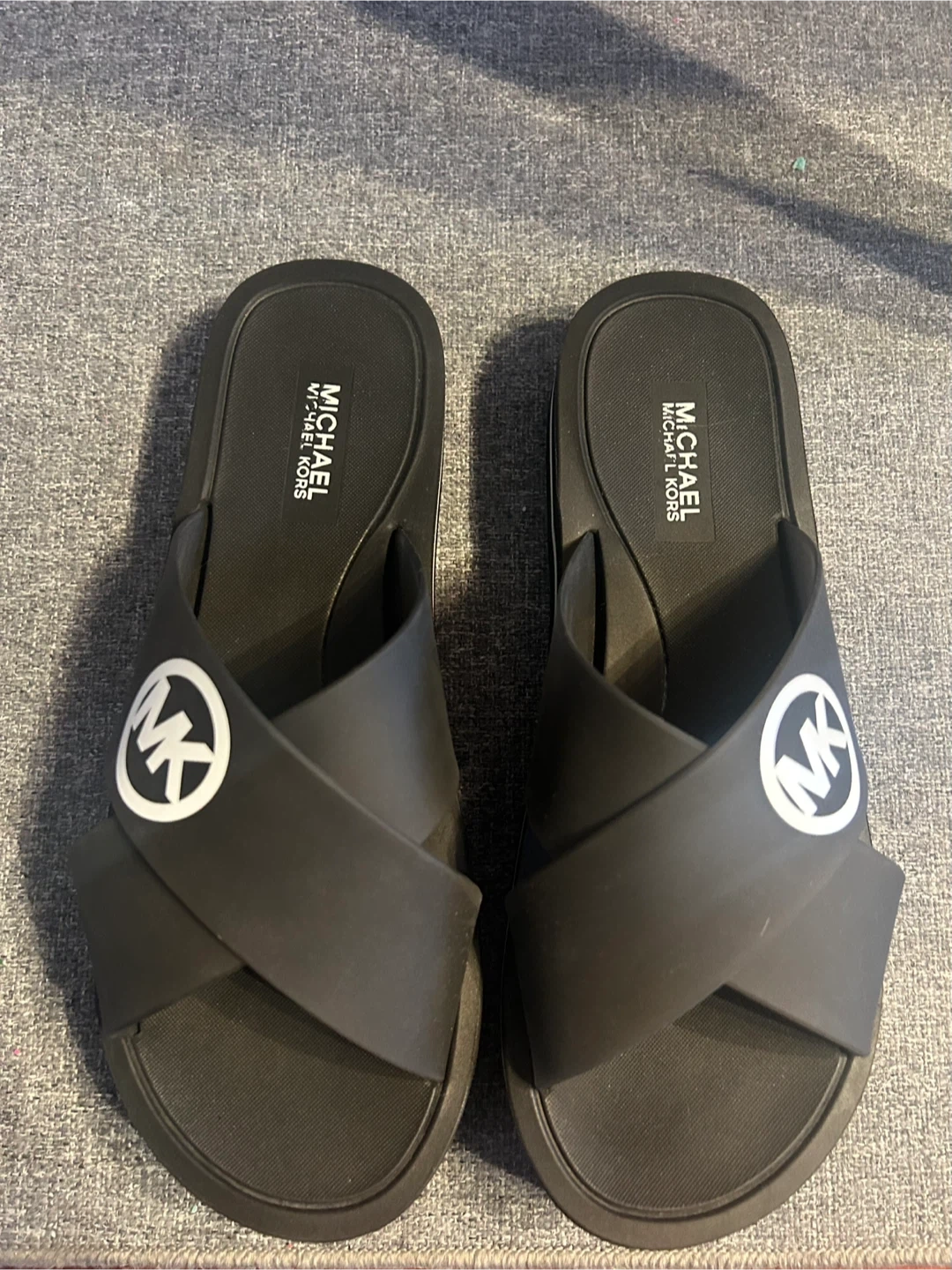 These are Michael Kors black crisscross sandals. They are in mint condition with the MK logo on the straps. As they have never been used. Perfect for summer as well as vacationing.
