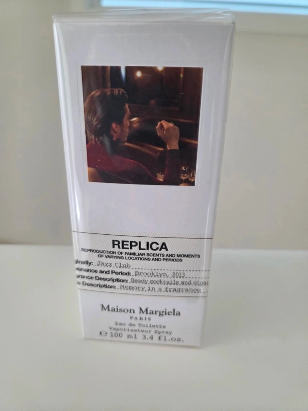 Maison Margiela REPLICA Jazz Club Eau de Toilette. "Heady cocktails and cigar" fragrance description. This is a vaporisateur spray, 100 ml or 3.4 fl.oz. It evokes a memory in a fragrance from Brooklyn, 2013.