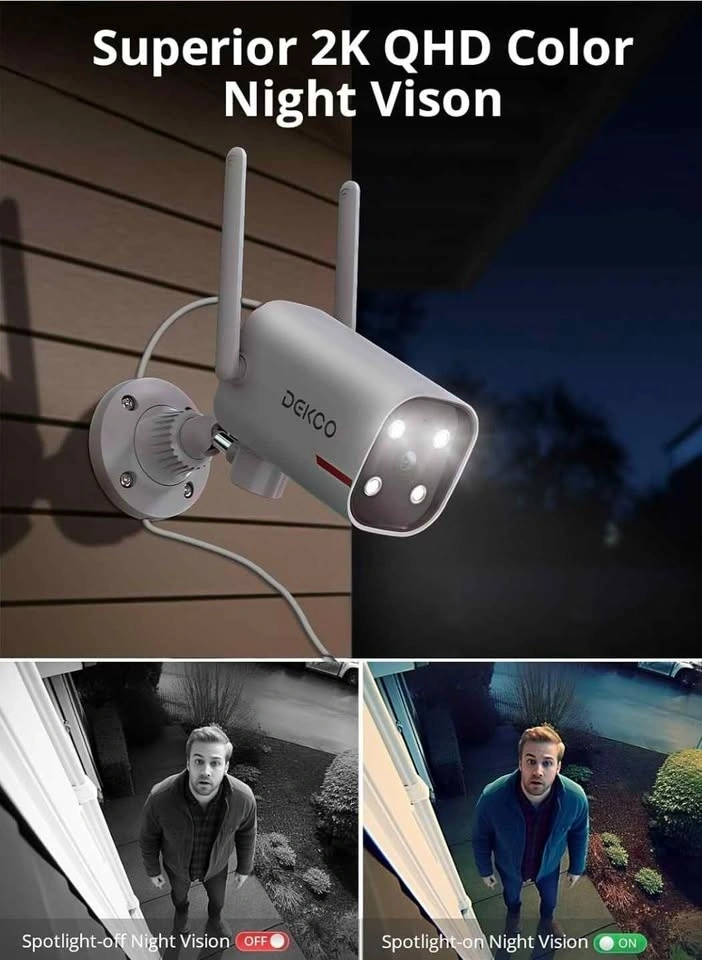 DEKCO 2Pack Outdoor Security Camera with 2K Color Night Vision,