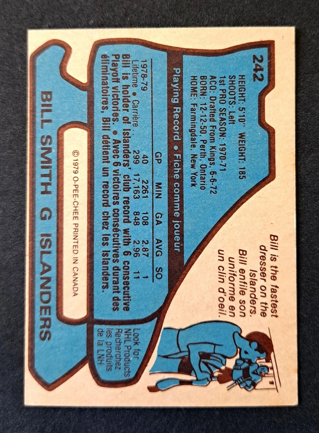 1979-80 O-Pee-Chee Hockey Bill Smith Card # 242 Islanders