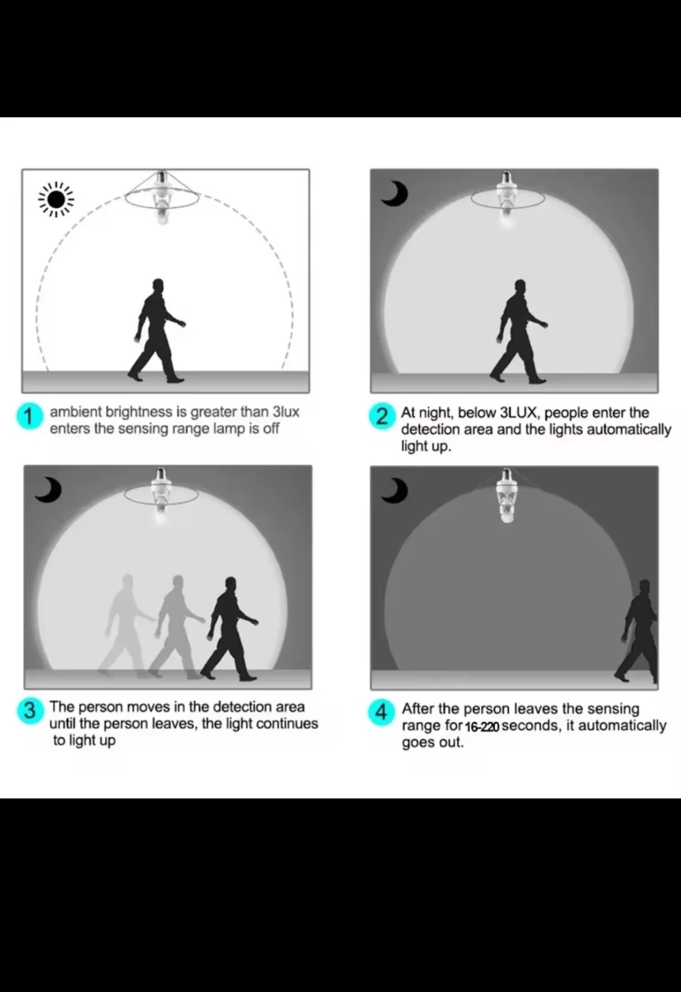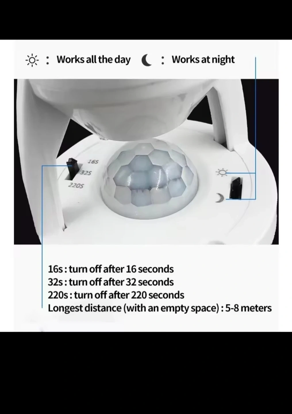 10Selling an E27 motion sensor lamp base! It works all day and night. The longest distance with an empty space is 5-8 meters. It also has a timer that can be set to turn off after 16, 32, or 220 seconds