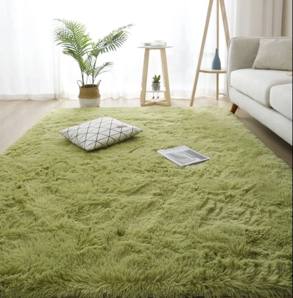 brand new rug green color may be a bit different from the picture colour but very soft selling it because it is bigger than my area it is easy to carry light weight