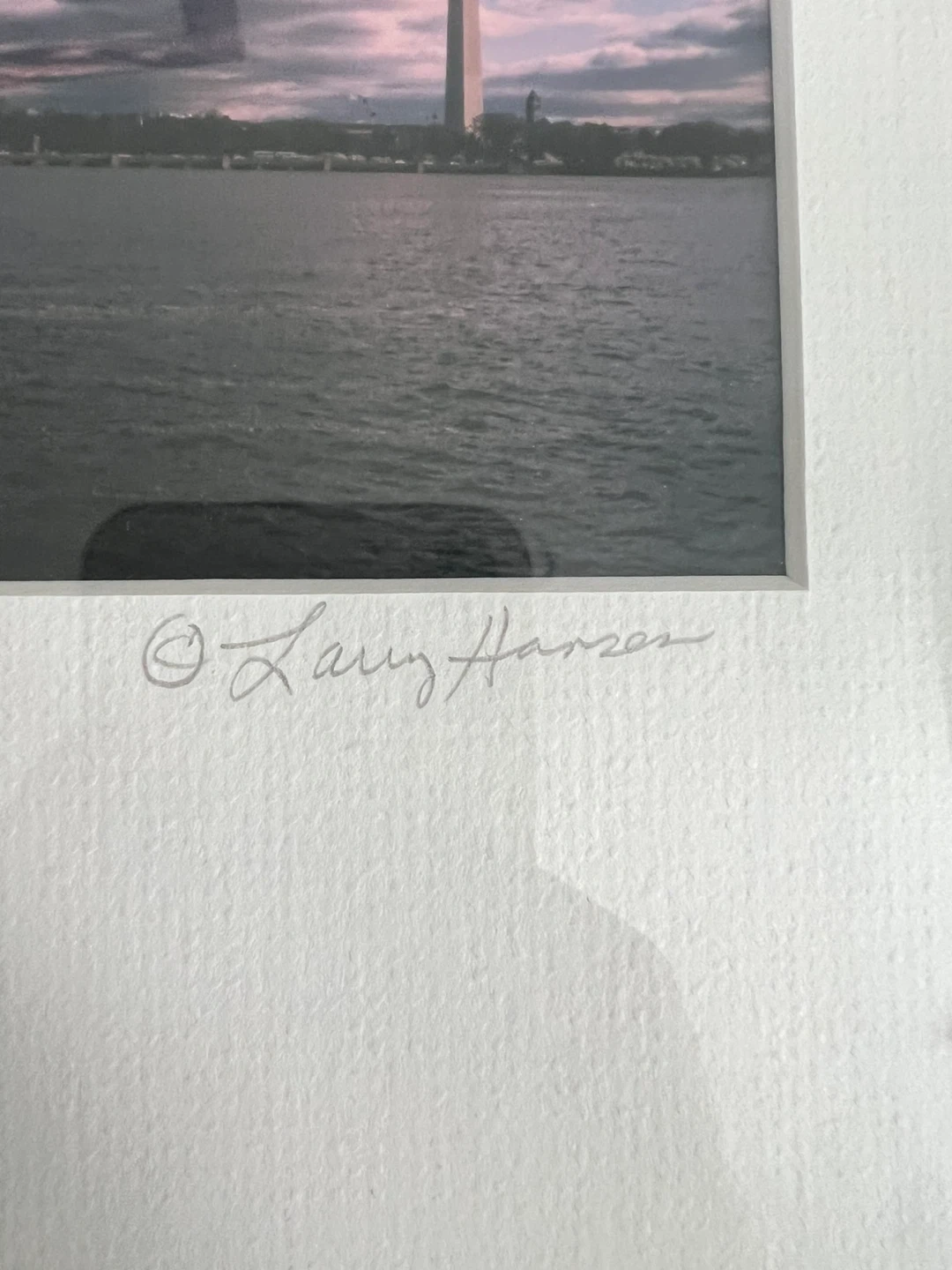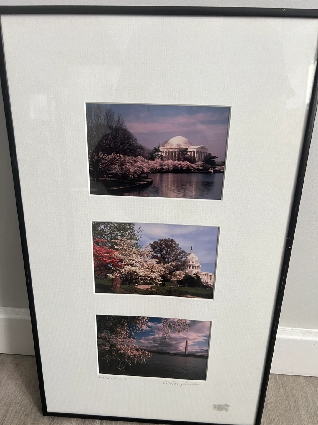scenes featuring cherry blossoms. Includes images of the Jefferson Memorial, the Capitol building, and the Washington Monument. Signed by the artist, Larry E. Hansen.